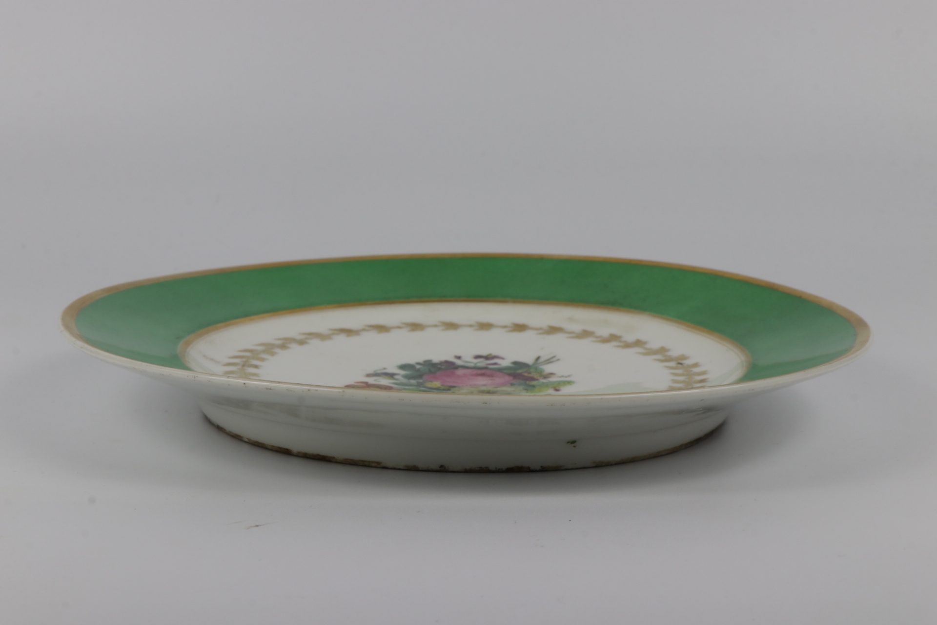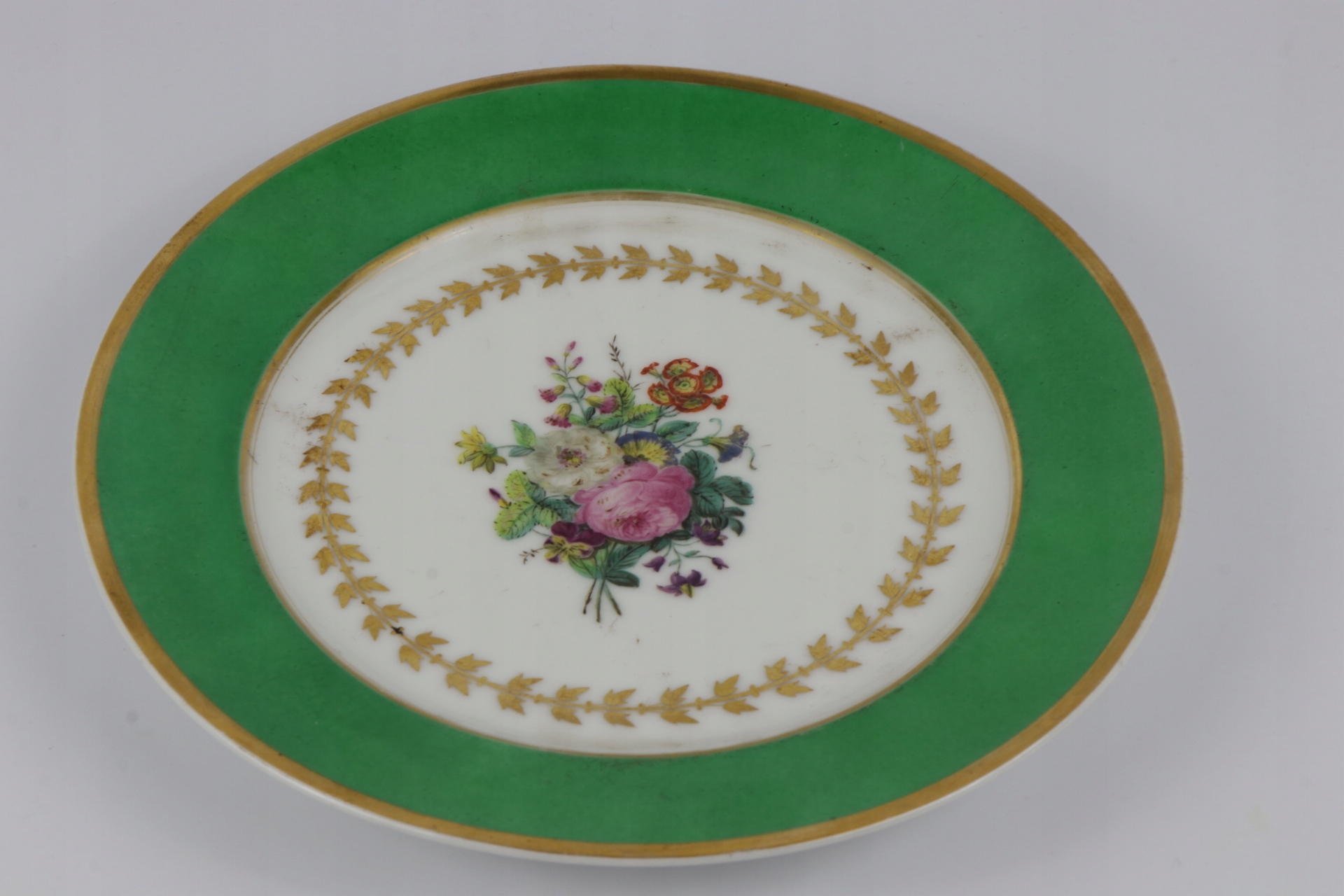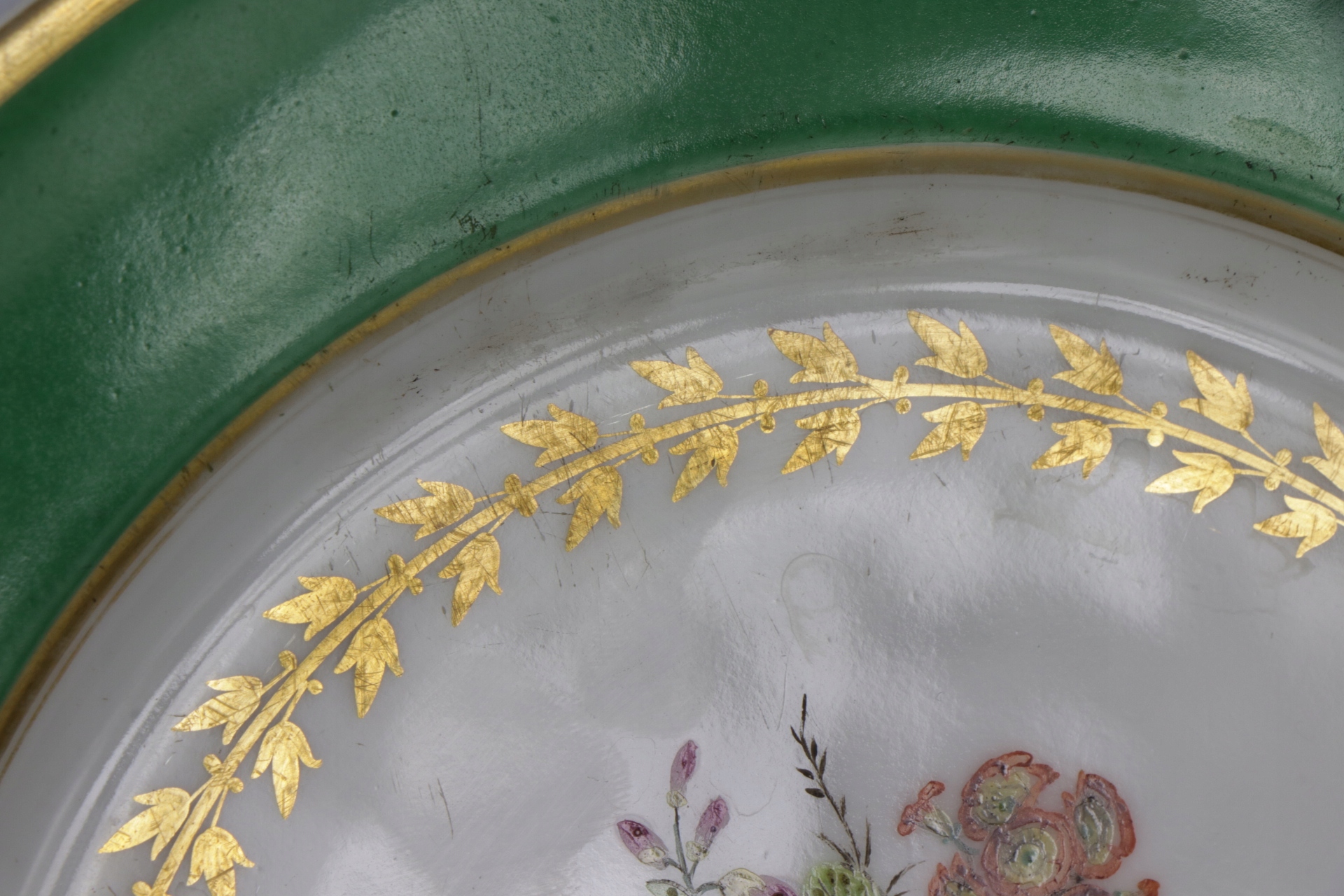 Фарфор, расписанный вручную и позолоченный. Красивый, очень изысканный и тщательно расписанный растительный орнамент. Край тарелки парижского зеленого цвета. Возможно, тарелка от лейбла Jacob Petit. На других аукционах я предлагаю еще две очень похожие тарелки, одна из них с подписью JP Jacob Petit
