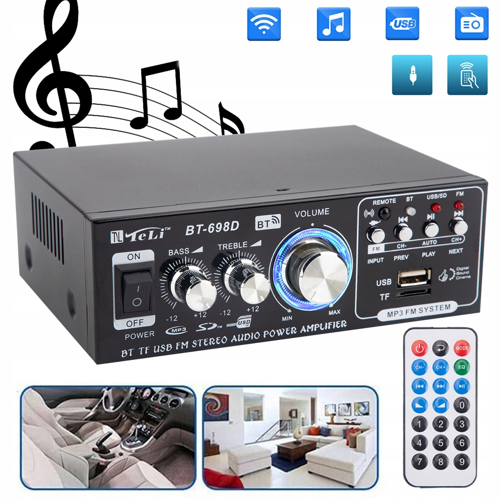 - 📻 Этот усилитель мощности поддерживает TF-карту, U-диск, воспроизведение формата MP3, поддерживает стереорадио FM.