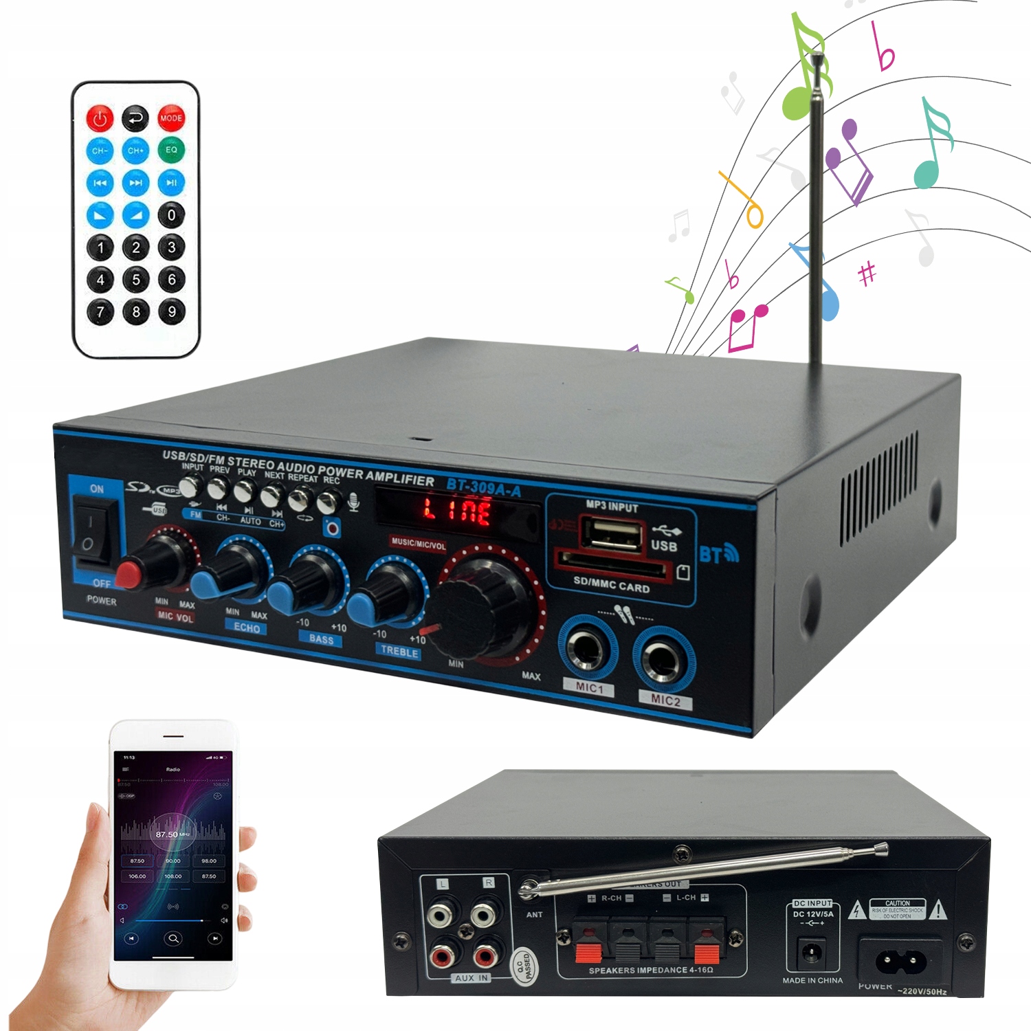 AMPLITUNER СТЕРЕО BLUETOOTH АУДИОУСИЛИТЕЛЬ ДЛЯ ДИНАМИКОВ FM-РАДИО + ПУЛЬТ ДИСТАНЦИОННОГО УПРАВЛЕНИЯ