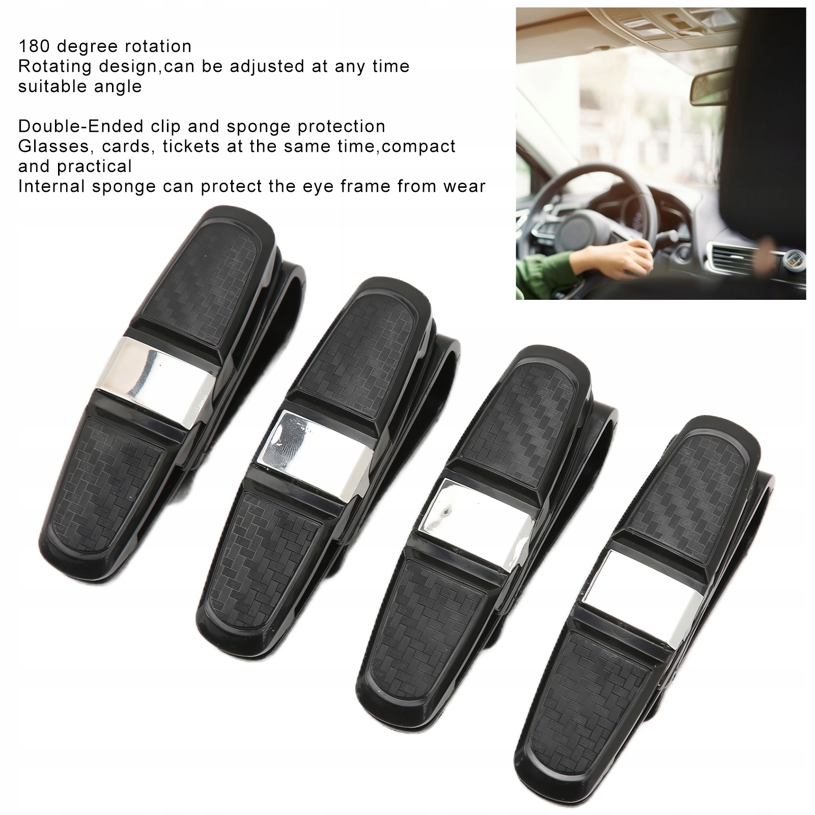 4 шт. Автомобильный солнцезащитный козырек, держатели для очков, универсальный держатель для солнцезащитных очков, двойной зажим для наконечника и поворот на 180 градусов с зажимом для билетной карты, серебристый