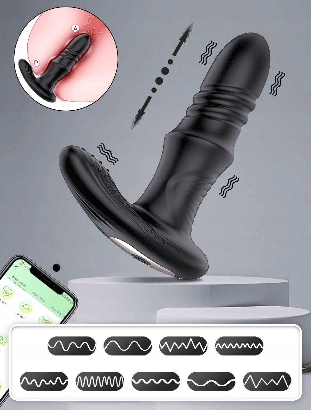 Анальный вибратор -массажер предстательной железы с заказанным движением, контролируемым приложением h1>