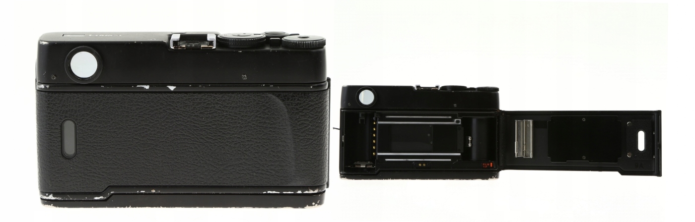 Стилистически простой корпус классической формы выполнен из алюминия, а нижняя и верхняя стенки — из титана. Все выполнено в черном цвете, частично покрыто ковровым покрытием, напоминающим кожу. Верхняя часть камеры асимметрична, поскольку почти все элементы управления находятся справа (если смотреть со стороны фотографа). Здесь есть два диска настройки: один для скорости, другой для компенсации экспозиции. Также имеется кнопка спуска затвора с рычагом привода пленки (непрерывная, одиночная) и автоспуск. Даже башмак вспышки был перемещен вправо от центра, оставив слева только элегантно интегрированный небольшой дисплей с количеством экспонированных кадров. Как и у зеркальных фотоаппаратов, в видоискателе имеется второй дисплей, показывающий выдержку от ½ до 1/4000 секунды и предупреждение о компенсации экспозиции.