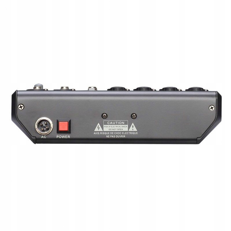 Оператор может контролировать, среди прочего: полоса высоких и низких частот, уровень усиления сигнала (GAIN) и степень перекрытия одного из 16 встроенных эффектов на данном канале. Рядом с каждым каналом имеется светодиод, указывающий пиковое усиление. Когда он загорается, мы можем быстро отреагировать на слишком высокий входной сигнал и уменьшить GAIN. Большим преимуществом микшера является встроенный USB-порт, благодаря которому сигнал со стереовыхода можно отправить на компьютер.