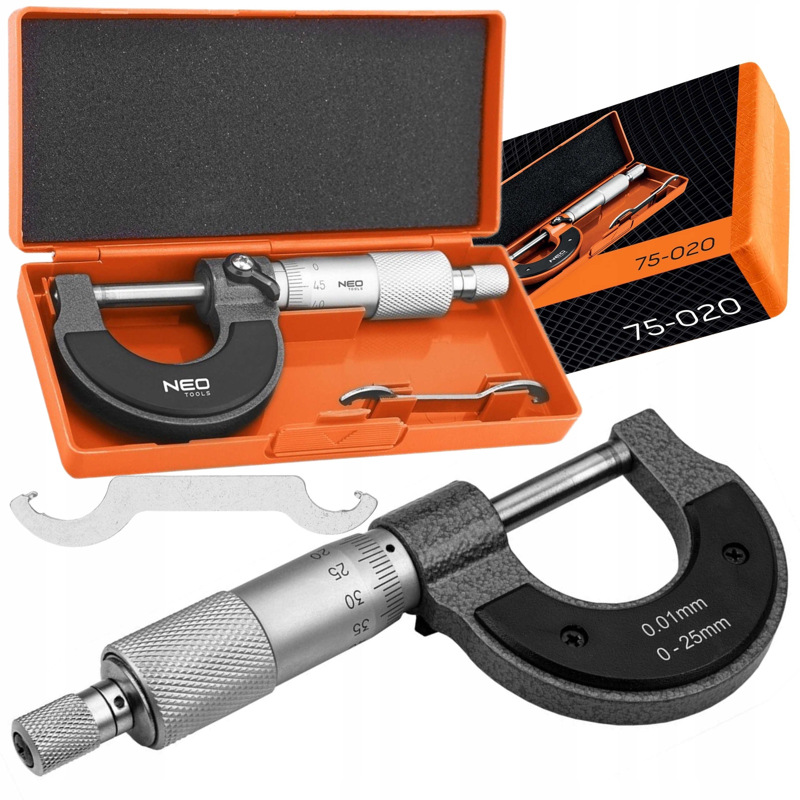 Микрометр Нониус 0-25 мм 75-020 НЕО — прецизионный прибор, предназначенный для проведения точных измерений даже очень мелких элементов, с точностью до ±0,01 мм. Инструмент понадобится в каждой автомастерской, на промышленном предприятии, а также дома, при ремонте и мелком ремонте. Он дает более точные результаты, чем штангенциркуль.