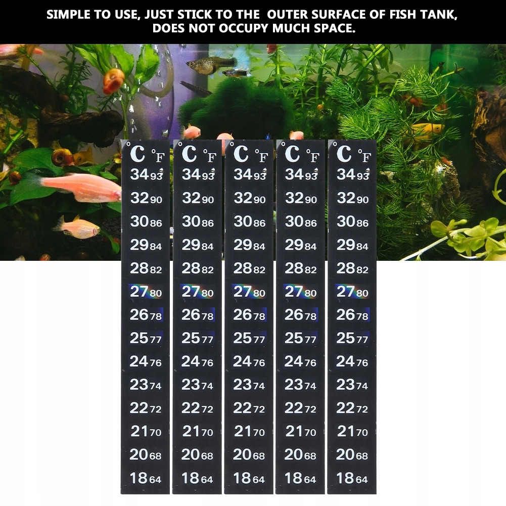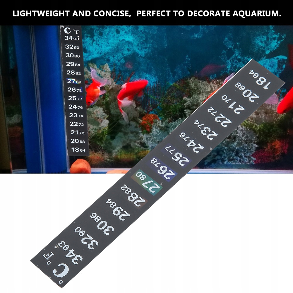 1. Температура отображается как по Фаренгейту, так и по Цельсию. Очень удобно читать. 2. Простой в использовании, просто приклейте к внешней поверхности аквариума, не занимает много места. 3.Применимо ко всем видам аквариумов и аквариумов. 4. Легкий и лаконичный дизайн, также идеально подходит для украшения аквариума. 5. Изготовлен из высококачественного ПВХ, долговечен в использовании.
