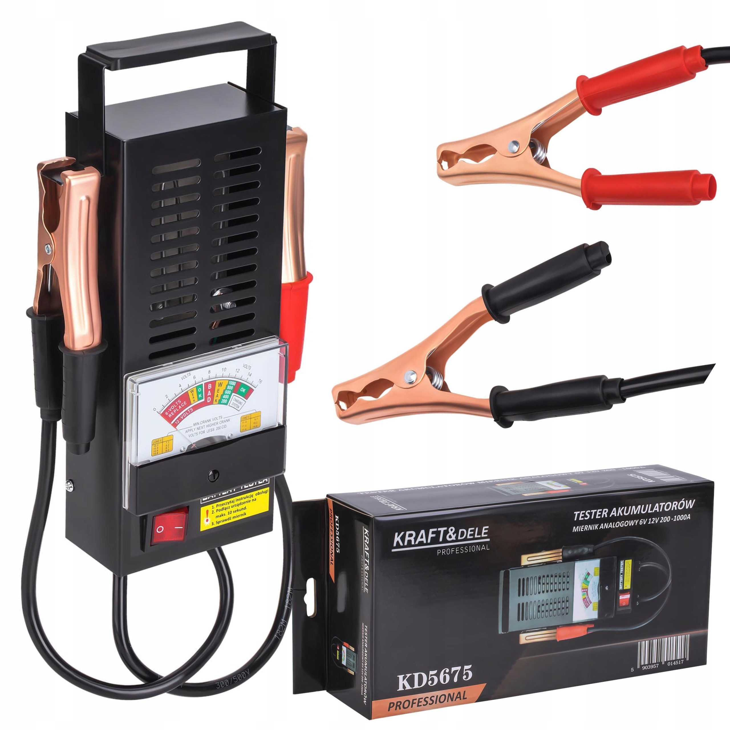 АНАЛОГОВЫЙ ТЕСТЕР ДЛЯ ПРОВЕРКИ АКБ 6/12В 200-1000А K&D KD5675