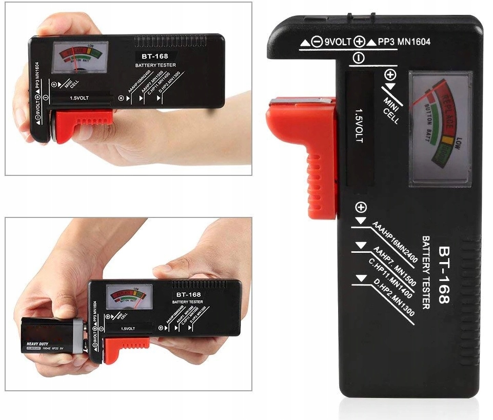 Устройство способно проверять батареи разных размеров в одном устройстве, оно работает с батареями AA/AAA/1,5 В/9 В или таблеточными батареями.