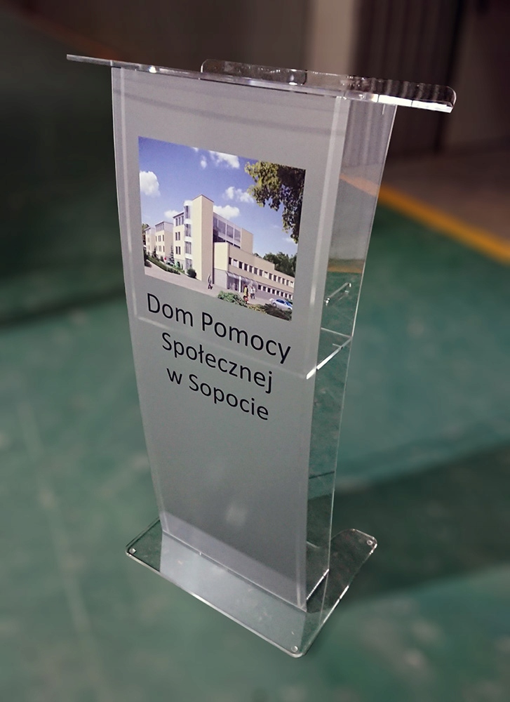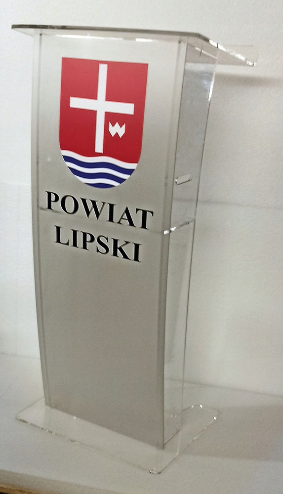 Наши кафедры из плексигласа очень универсальны, что позволяет легко персонализировать их в зависимости от характера мероприятия. На них мы легко можем нанести логотип компании, герб города или любой другой графический элемент. Дополнительными преимуществами наших конференц-кафедр являются легкость и мобильность. Благодаря компактной, прочной конструкции они не требуют сборки и при необходимости их можно перевозить в легковом автомобиле.