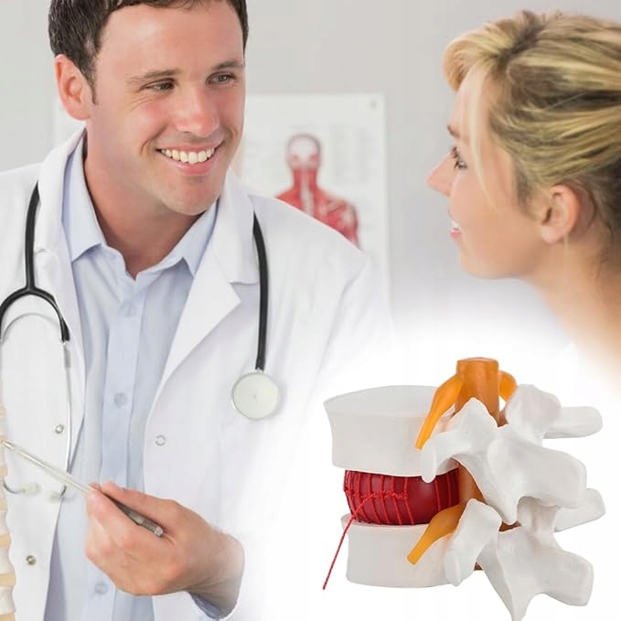 Подробная демонстрация анатомии: Модель грыжи межпозвоночного диска поясничного отдела позвоночника показывает, как поясничный отдел позвоночника человека может выскользнуть, когда позвонки сгибаются, имитируя движение позвоночника, когда он изгибается или скручивается в реальной жизни, и Модель грыжи межпозвоночного диска для учебных целей обеспечивает отличную визуализацию, с помощью которой вы можете объяснить своим ученикам, как можно неправильно использовать их тело, вызывая проблемы с поясницей, и как грыжа межпозвоночного диска может вызвать сдавление корешков спинномозговых нервов.