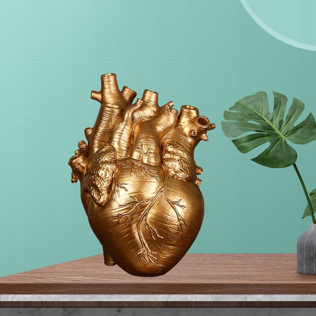 Анатомическая ваза сердца от украшения горшка с смолой дома золото 13x9x17 см