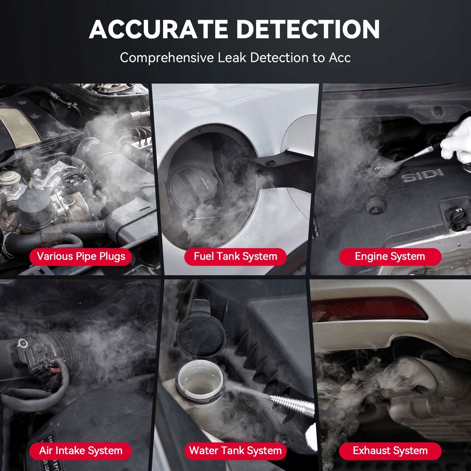 Этот тестер утечки дыма тщательно идентифицирует и определяет источник утечек дыма в автомобиле, обеспечивая эффективное обслуживание транспортных средств >