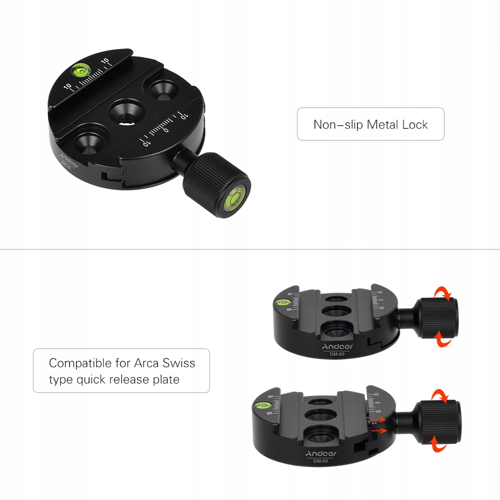 Andoer 60 мм алюминиевые футы быстрое выброс 3/8 дюймовой плитки с адаптером/4-дюймовым адаптером/пузырьком для тарелки QR Arca Swiss qr