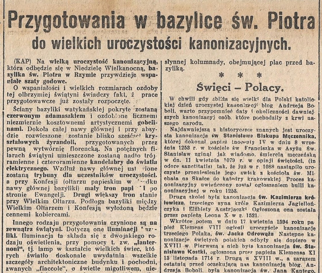 АНДРЕЙ БОБОЛА КАНОНИЗАЦИЯ