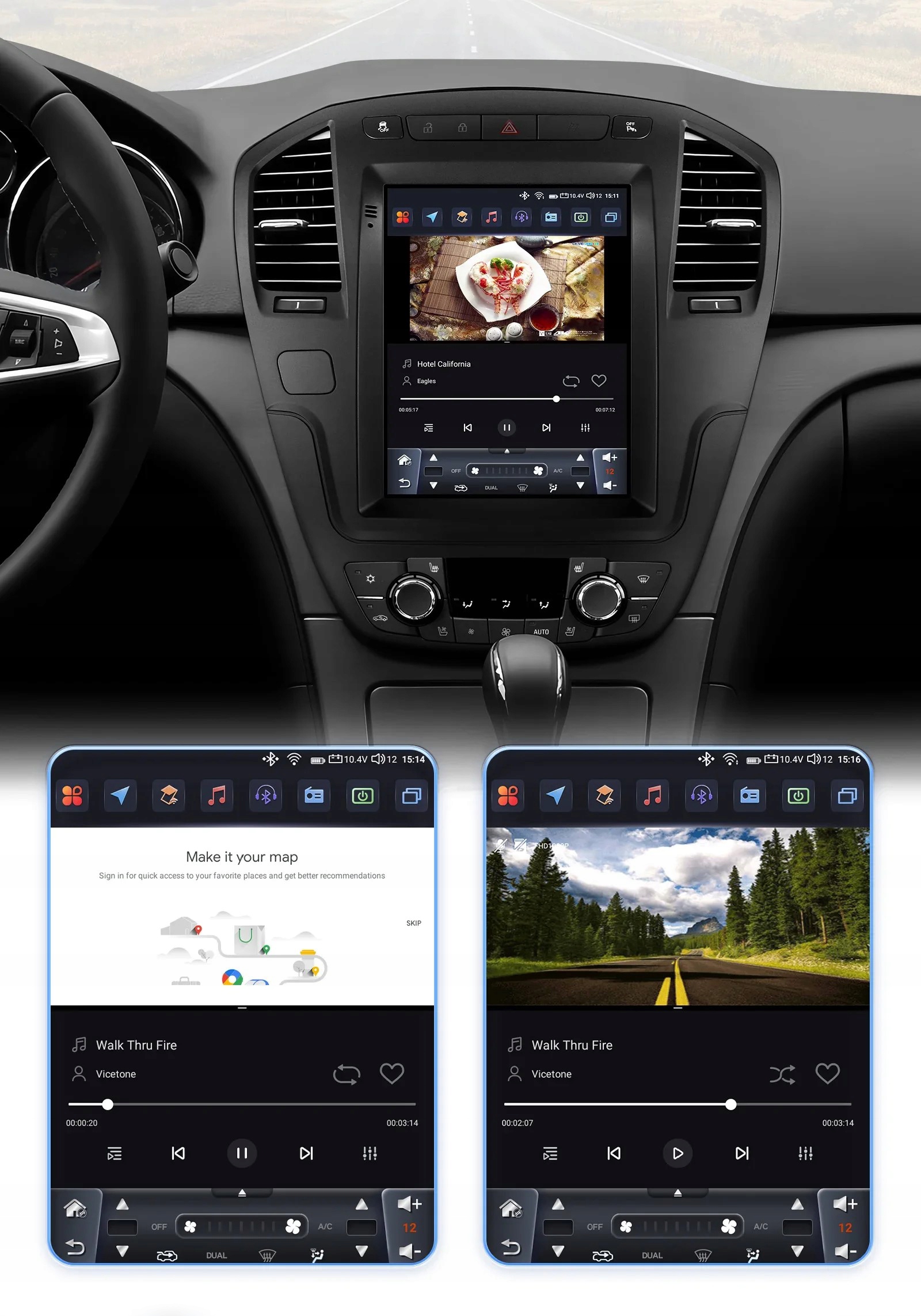Вы можете использовать 2 приложения одновременно (например: навигация + музыка, камера ADAS + музыка и т. Д.)