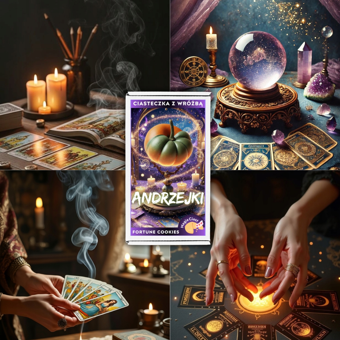Внутри - fortune PL + EN, поэтому они идеально подойдут для домашней вечеринки, объединения компании, классного Андреевского дня, вечера Таро и тематических развлечений в школе.