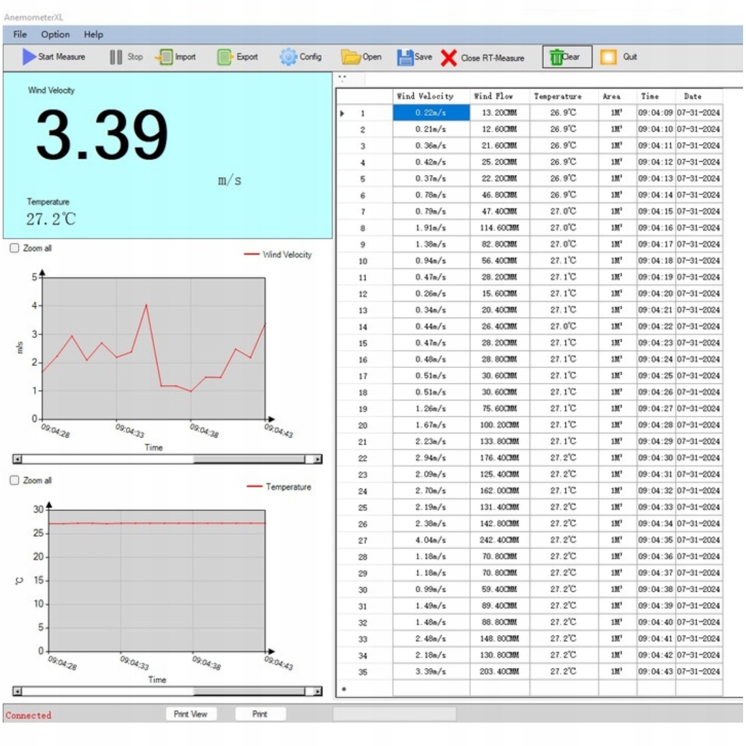 Профессиональное устройство, используемое в промышленных и исследовательских целях. Он полезен для измерения скорости и температуры воздуха в системах охлаждения, компьютерных вентиляторах, кондиционерах, воздуходувках и вентиляции. Благодаря использованию теплового зонда измерения очень точны и обнаруживают даже малейшее движение воздуха.