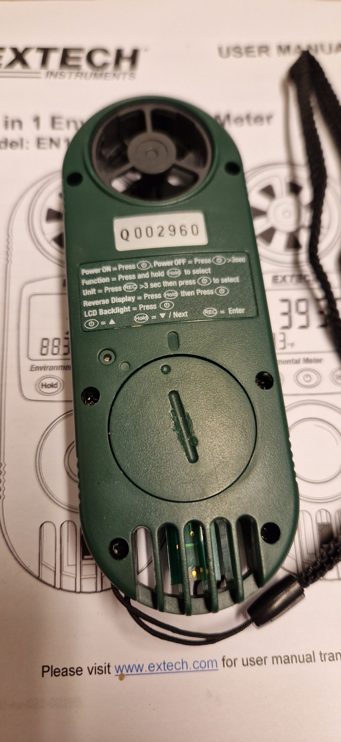 - < b >Батарея CR2032: Анемометр