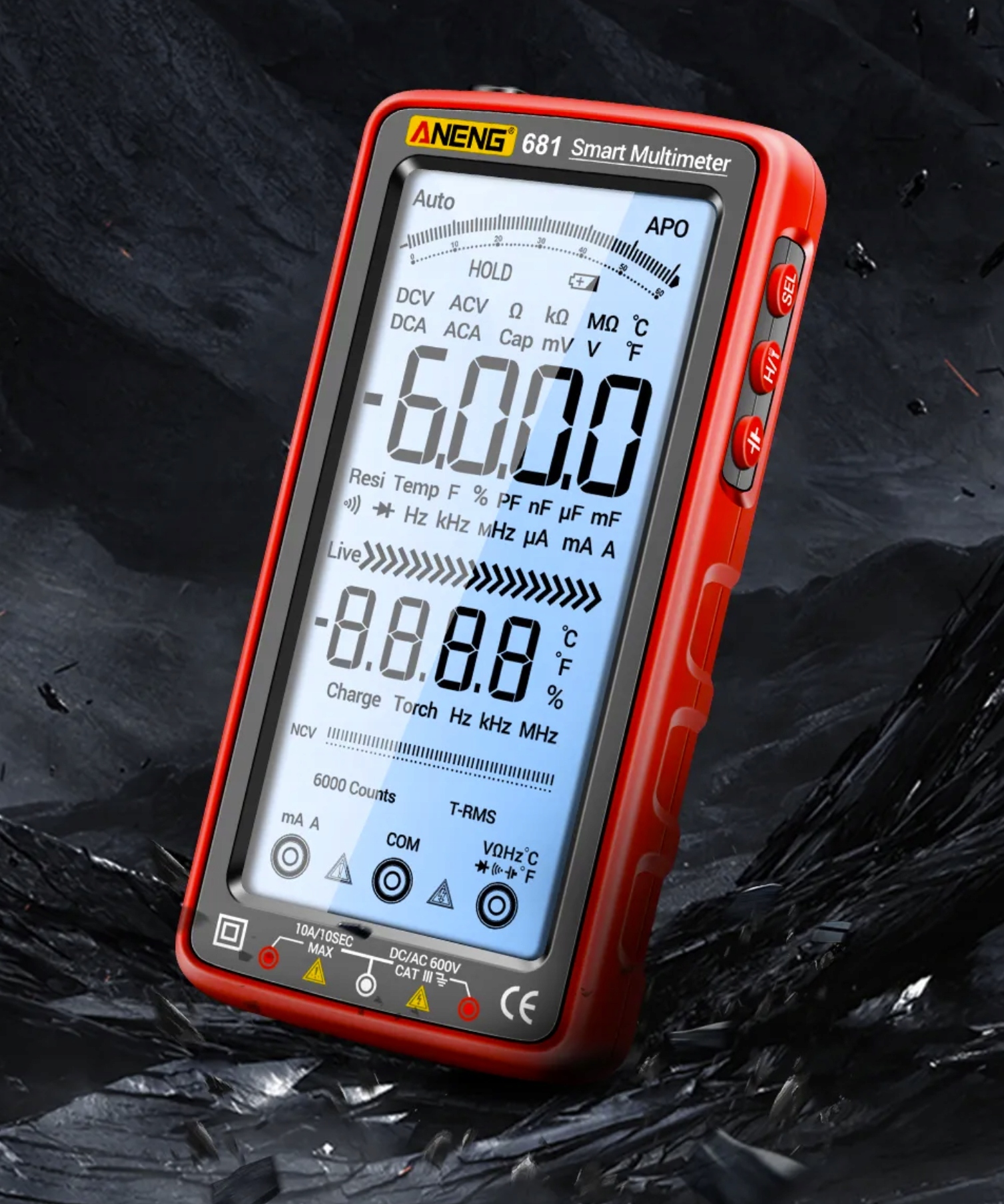 Мультиметр ANENG оснащен большим 5-дюймовым ЖК-дисплеем.