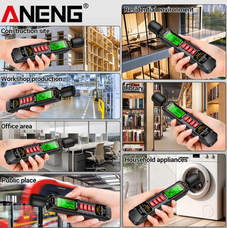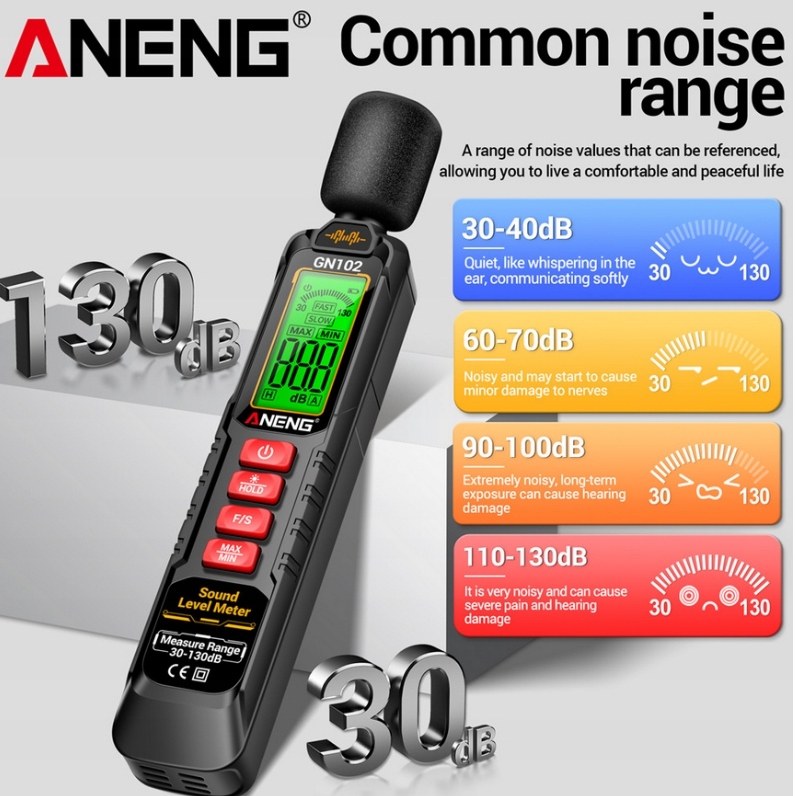 Цифровой сонометр ANENG GN102 с ЖК-дисплеем и уровнем шума 30–130 дБ