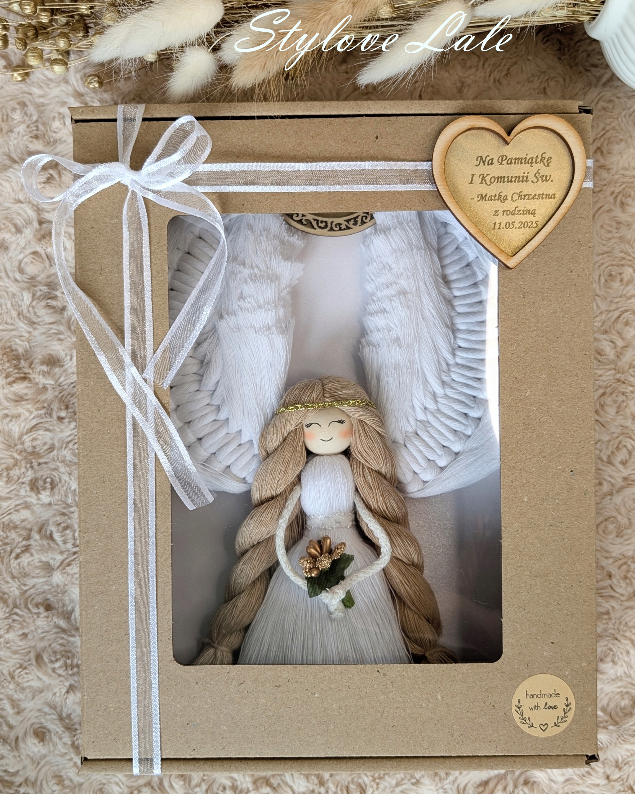 Ангел -опекун для мальчика Ангел Сувенир Фрейм Крещение Причастие макрам