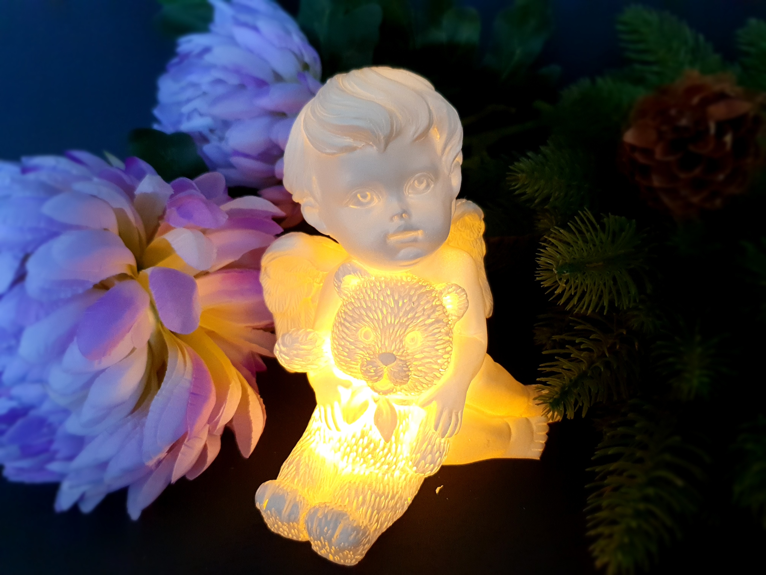 Освещение фигуры ангела со светом в теплом белом.