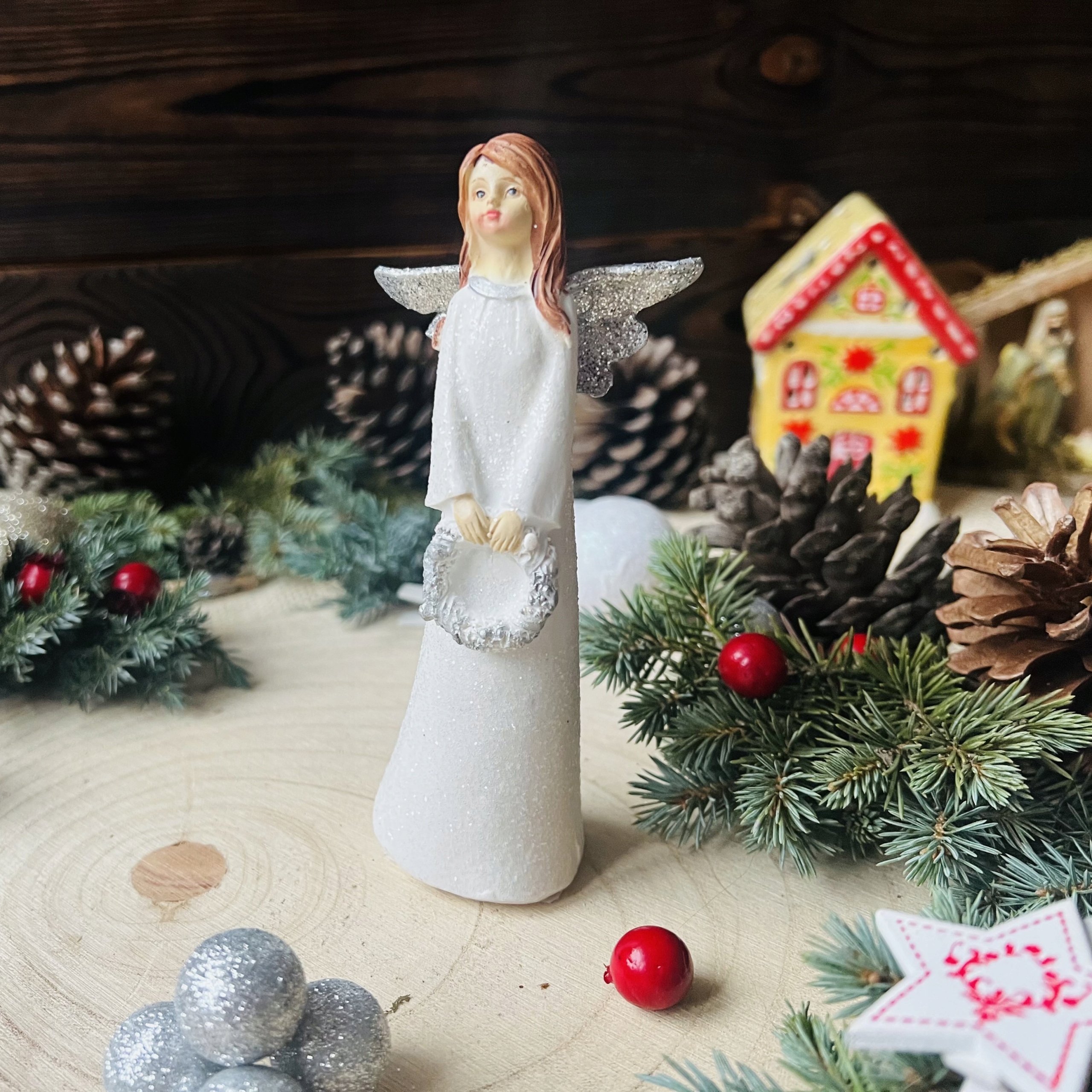 Ангел Ангел Ангел Ангел Стар -Старная фигура 15 см - Классическое и идеальное украшение для праздников - Ангел для святого крещения и причастия! Light