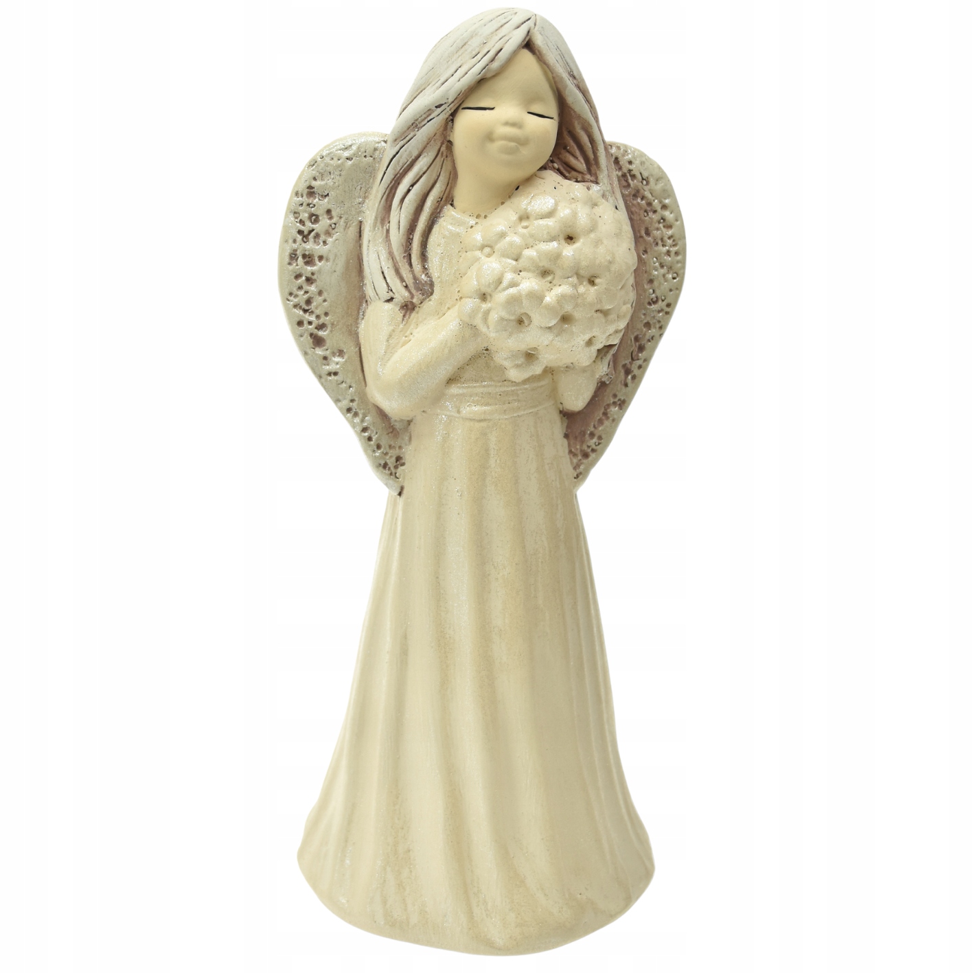 - Ангел стеклянный, девочка с бежевым букетом, рост 17,5 см.