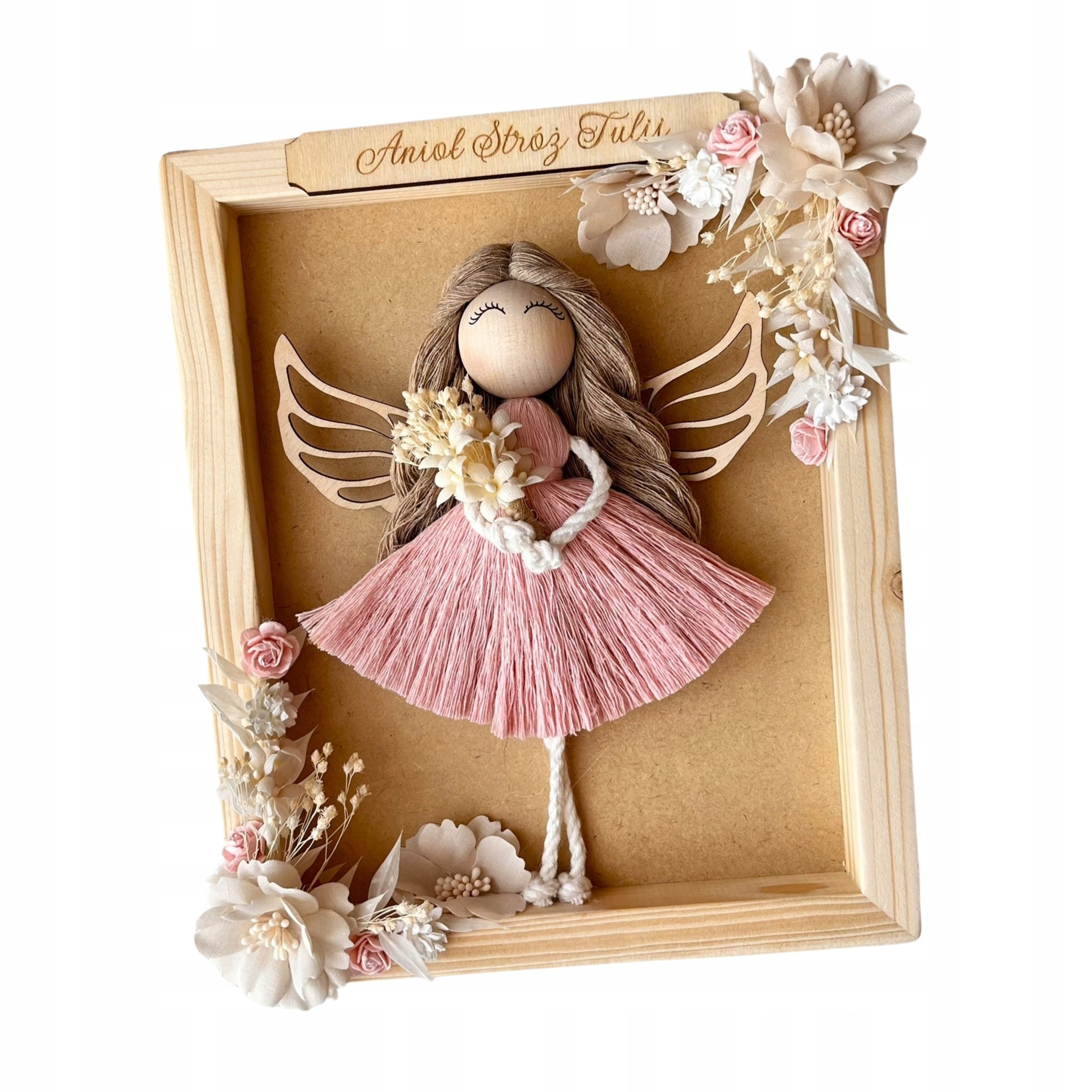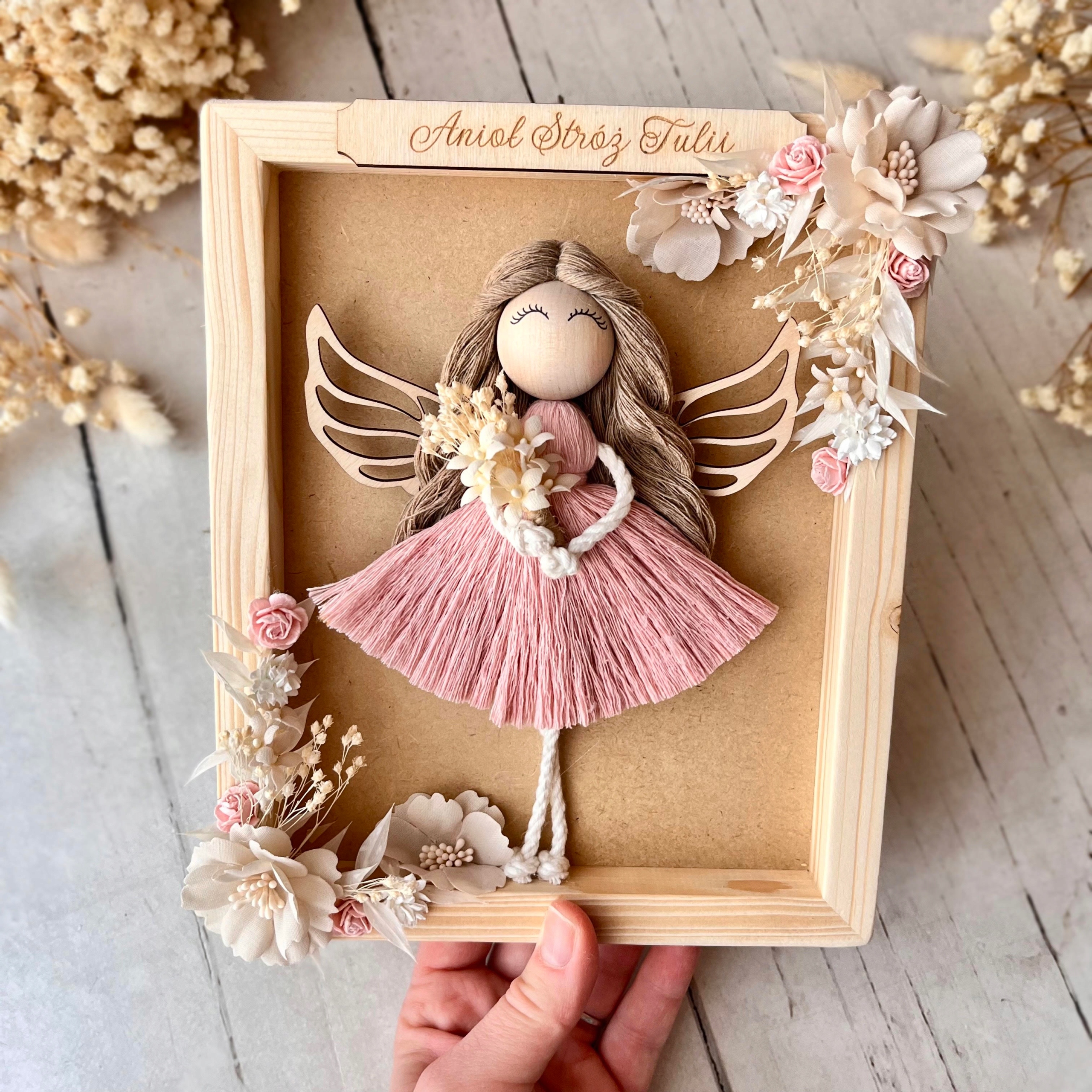 Сувенир на Крещение и Первое Причастие для девочки - ангелочек макраме ручной работы в деревянной рамке