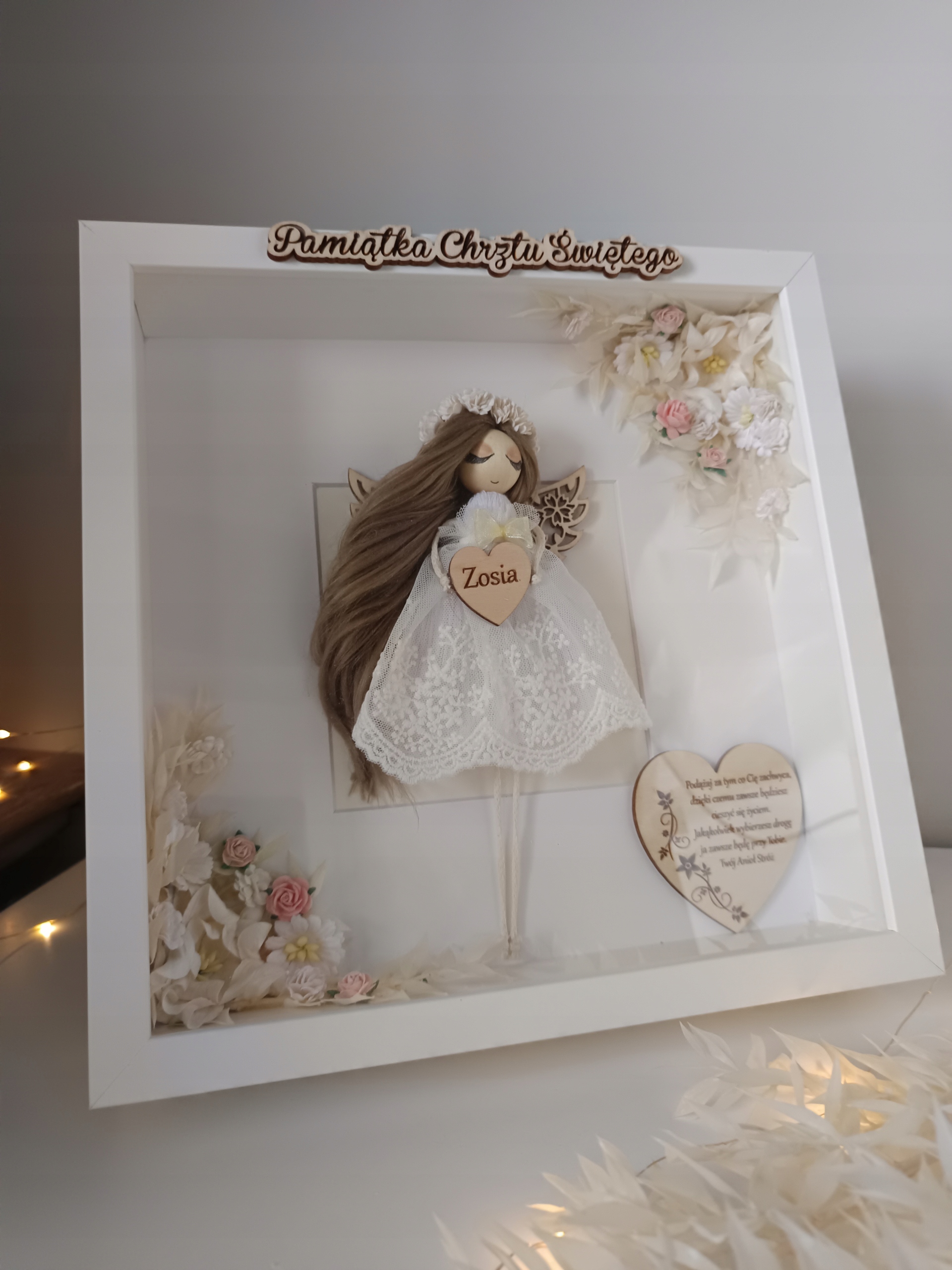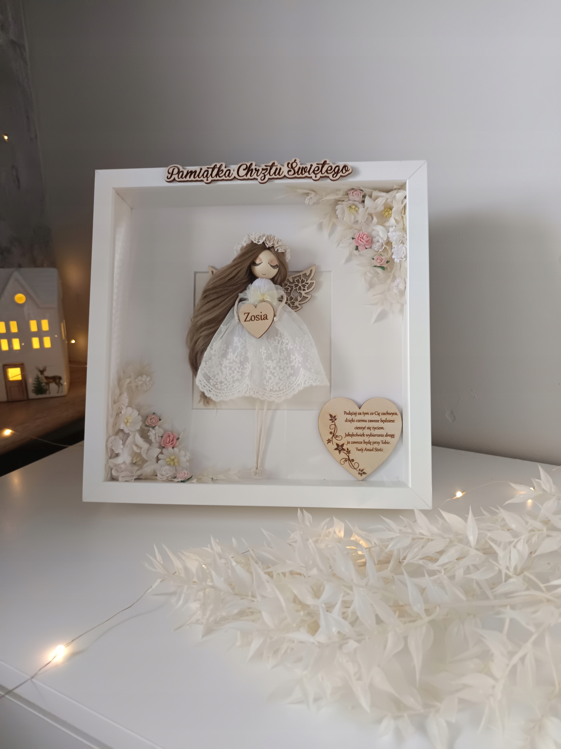 ✨Ангел помещен в 3D рамку размерами 25/25 за оргстеклом, благодаря чему ангел защищен от повреждений и пыли.