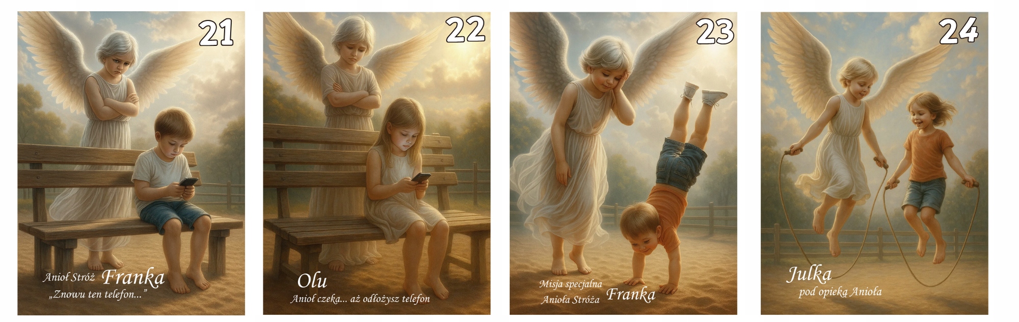 В предложении также есть две уникальные картинки с подмигиванием - с Ангелом-хранителем, который с легким недовольством смотрит на ребенка, поглощенного телефоном, а не спортом.
