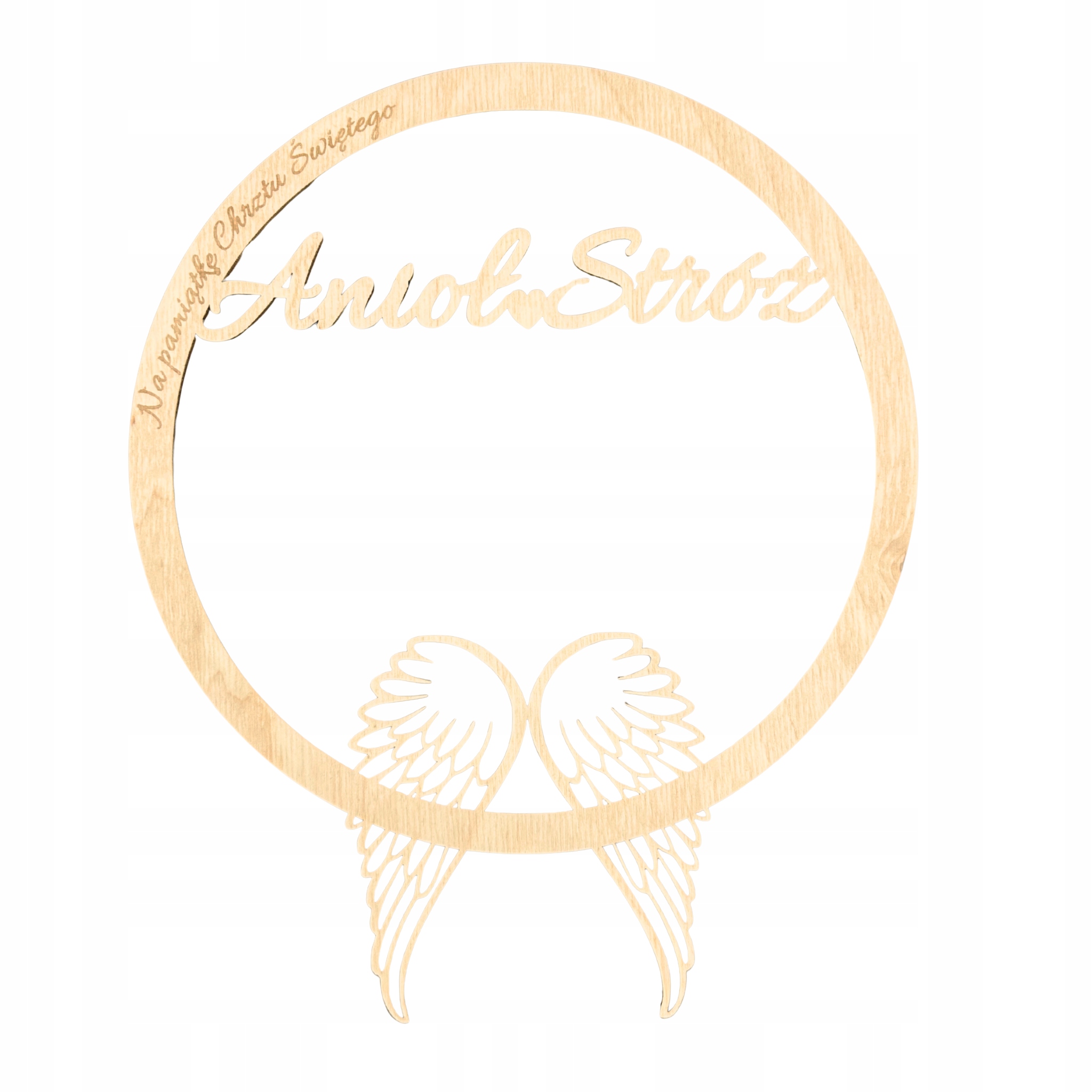 Обруч деревянный, украшение, надпись «АНГЕЛ-ХРАНИТЕЛЬ» с крыльями, гравировка «На сувенир Святого Крещения»