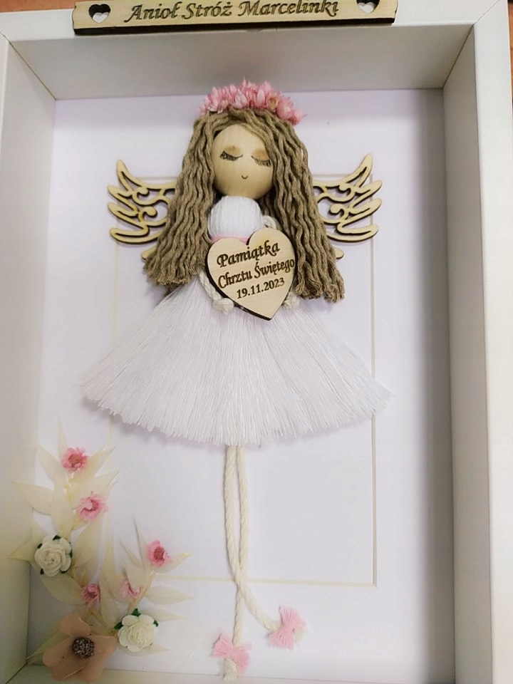 Ангел в 3D рамці макраме на хрестини