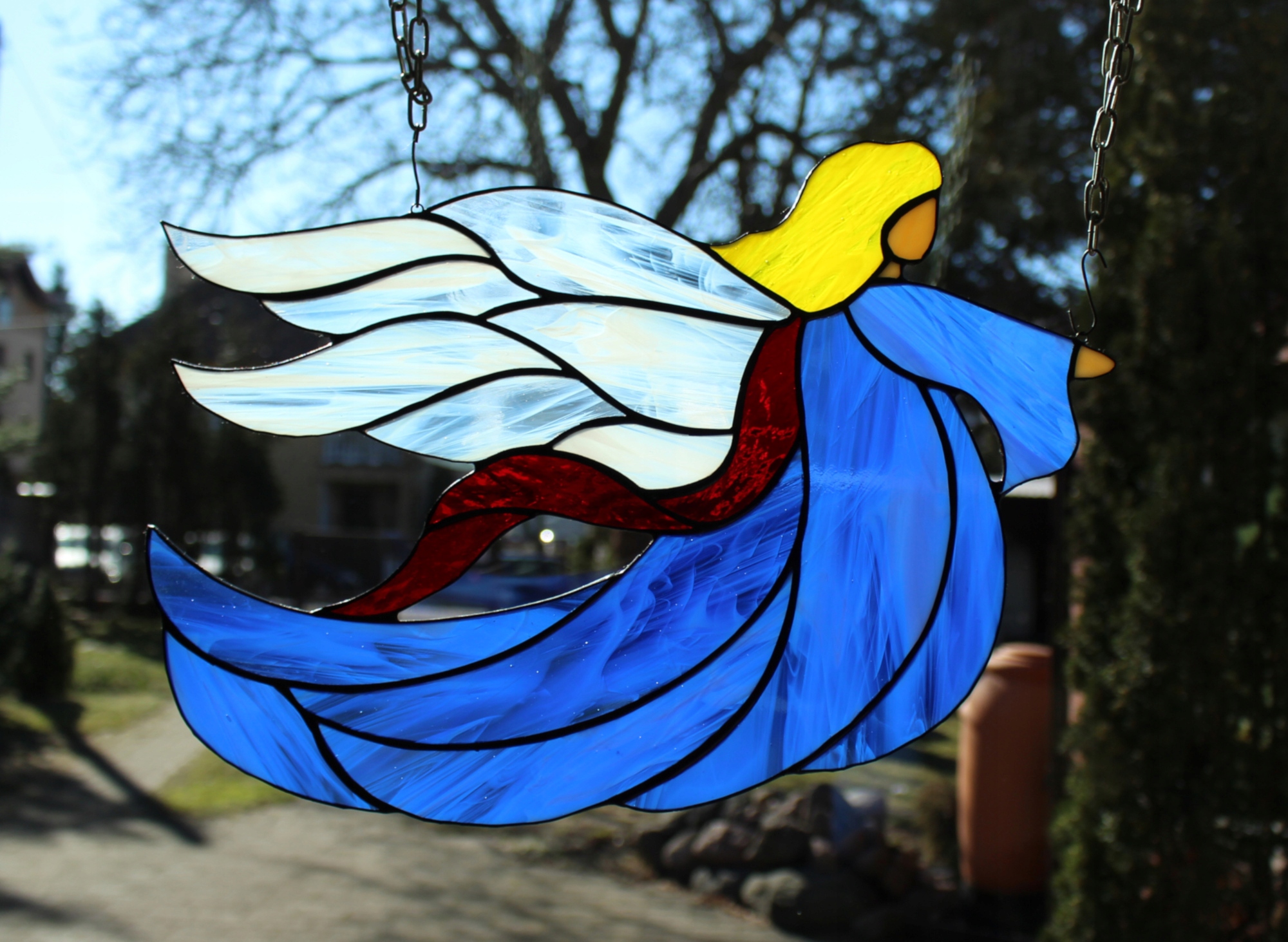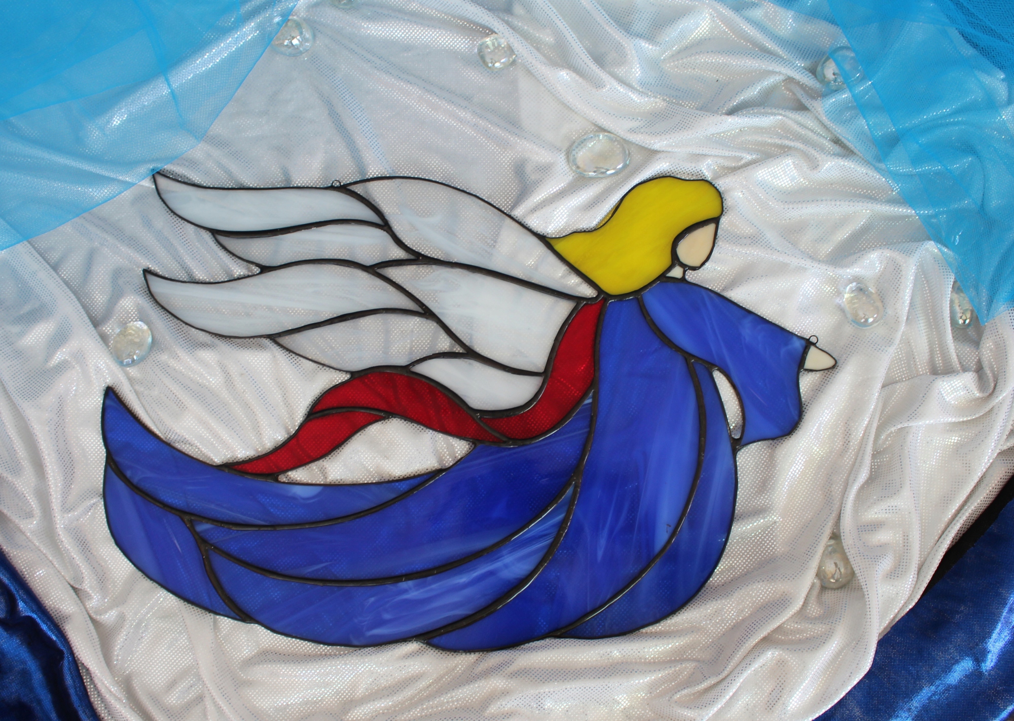 Anioł witraż Tiffany Kal niebieski, do zawieszenia