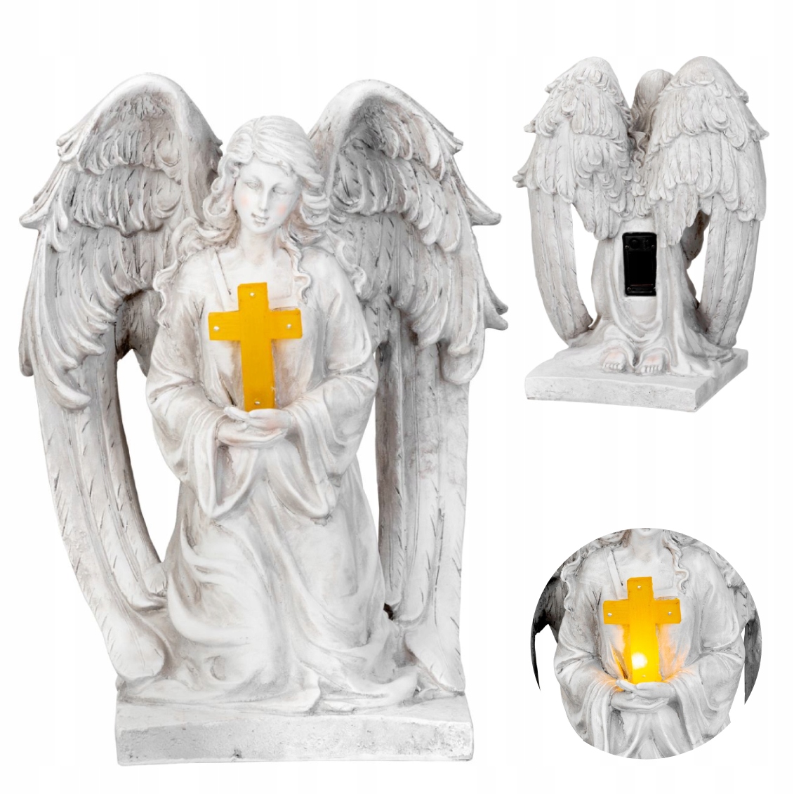 Ангел с Cross Angel Figturine Sculpture Decorent для могилы солнечной светодиоды
