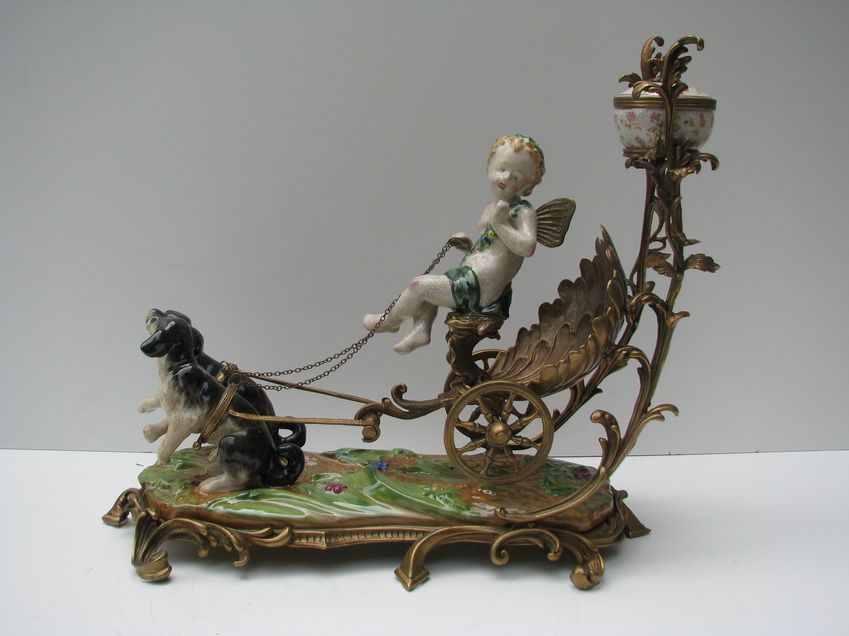 Здравствуйте, сегодня я хотела бы предложить Вам фарфоровую фигурку музейного качества с бронзовой фурнитурой, изображающую ангела и собак.