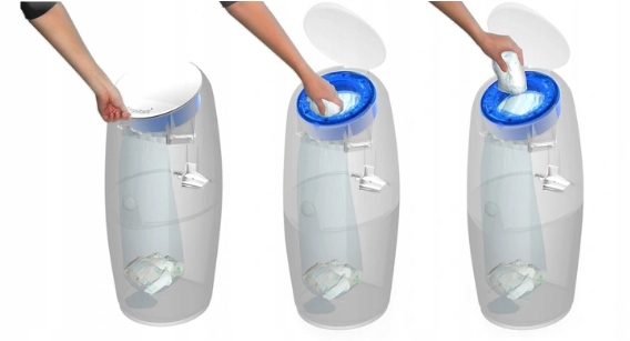 - Для контейнера предусмотрены специальные вкладыши Angelcare - каждый вкладыш вмещает примерно 100-150 использованных подгузников (в зависимости от размера подгузников).