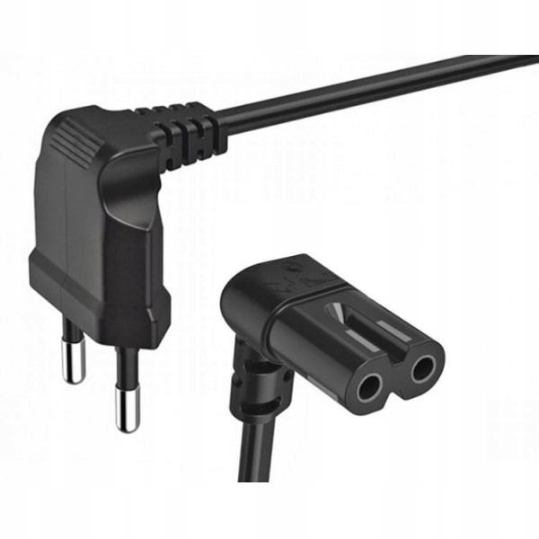Оснащен угловой вилкой C7 и угловой европейской вилкой. разъем питания. Благодаря этому кабель позволяет подключать устройства, расположенные в труднодоступных местах, например, непосредственно у стены, и использовать труднодоступные розетки, расположенные, например, за мебелью.