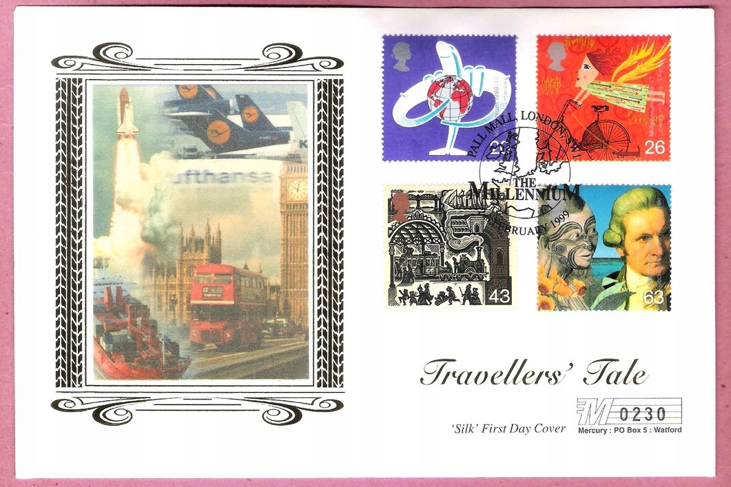 Anglia 1999 FDC London 4zn. Millennium, podróże, odkrywcy, JEDWAB