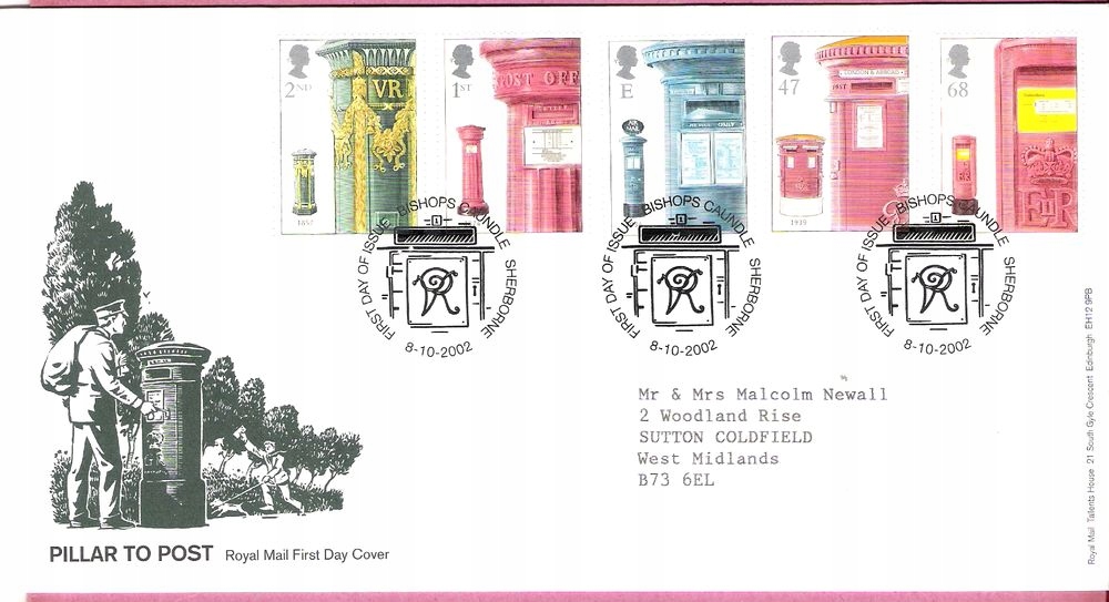 Anglia 2002 FDC Bishops, 5zn. poczta, stare skrzynki na list y