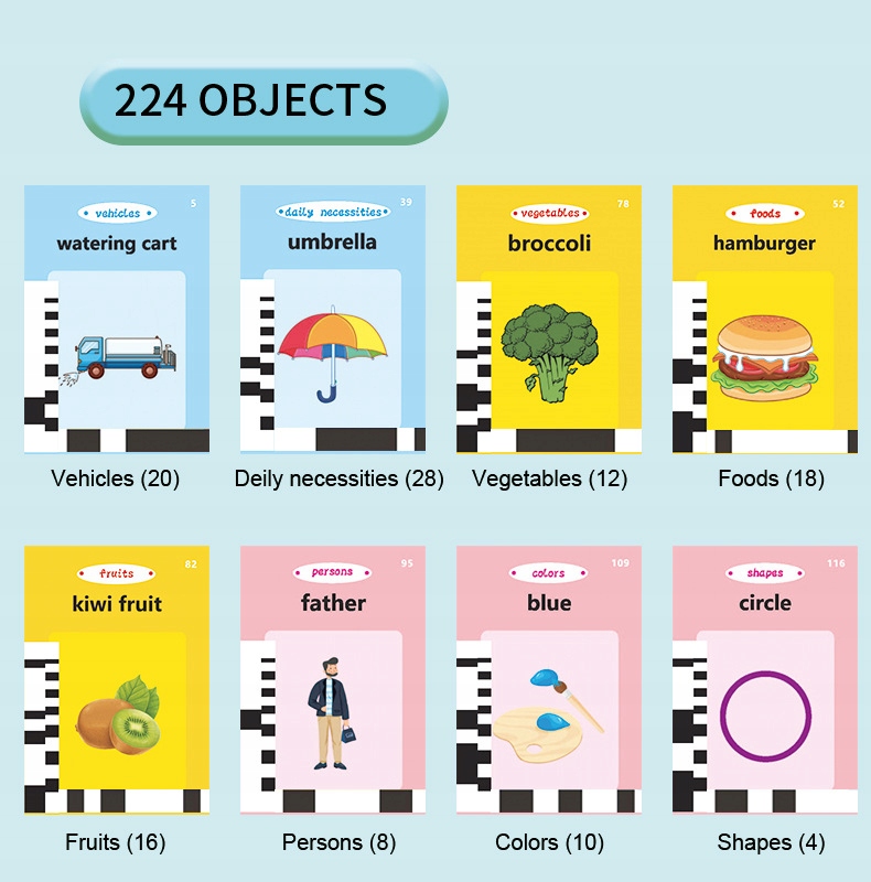 ✅ Различные категории словарного запаса: Читатель карт включает в себя различные категории слов, такие как животные, транспортные средства, еда, фрукты, овощи, цвета и другие, что позволяет вам узнать о различных темах.