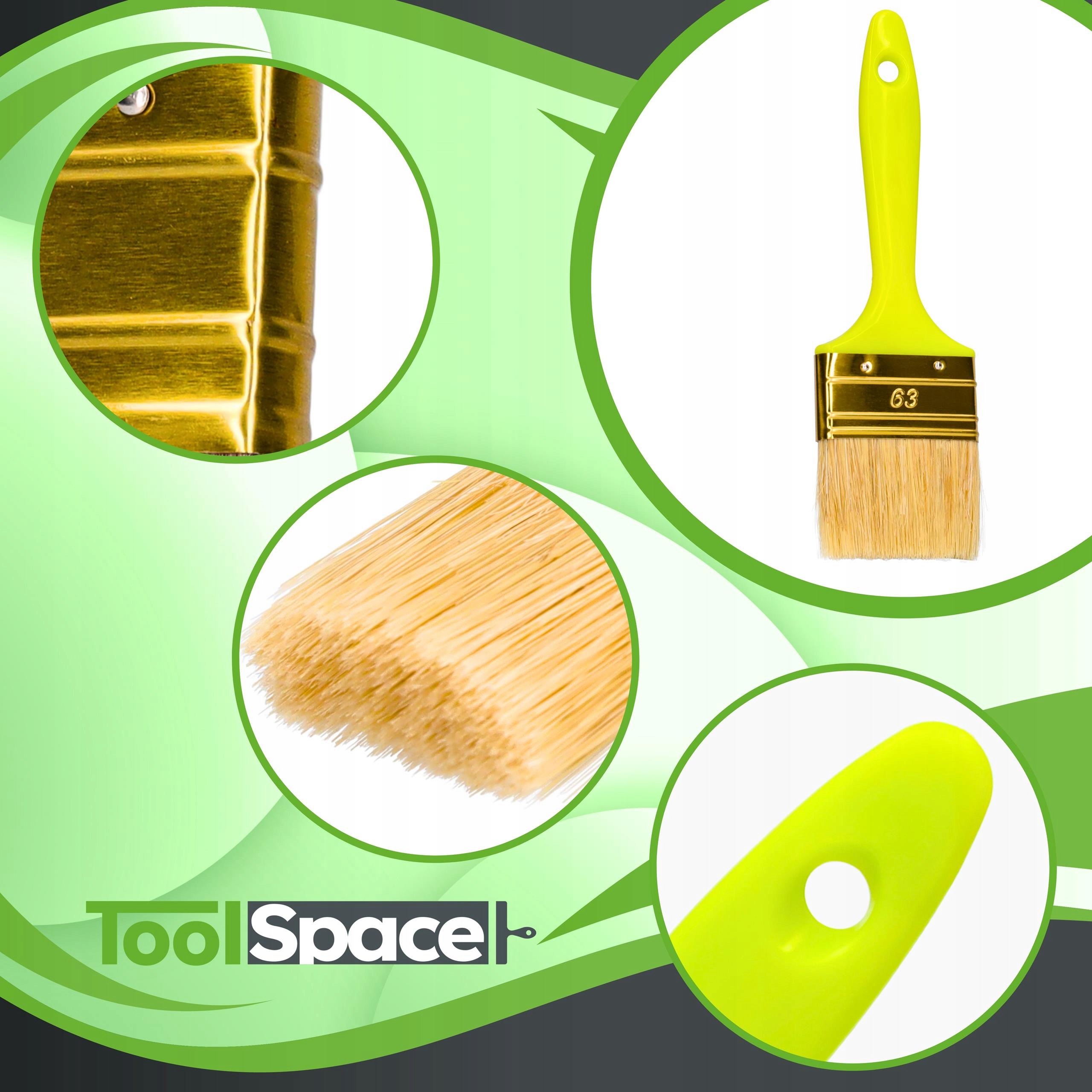 щетки изготовлены из смеси синтетических волокнов и натуральных щетинок, что обеспечивает очень хорошее поглощение краски, а также в то же время и ровное распределение на раскоренной поверхностной щетке. Живопись более эффективна - частота погружения в краску меньше.
