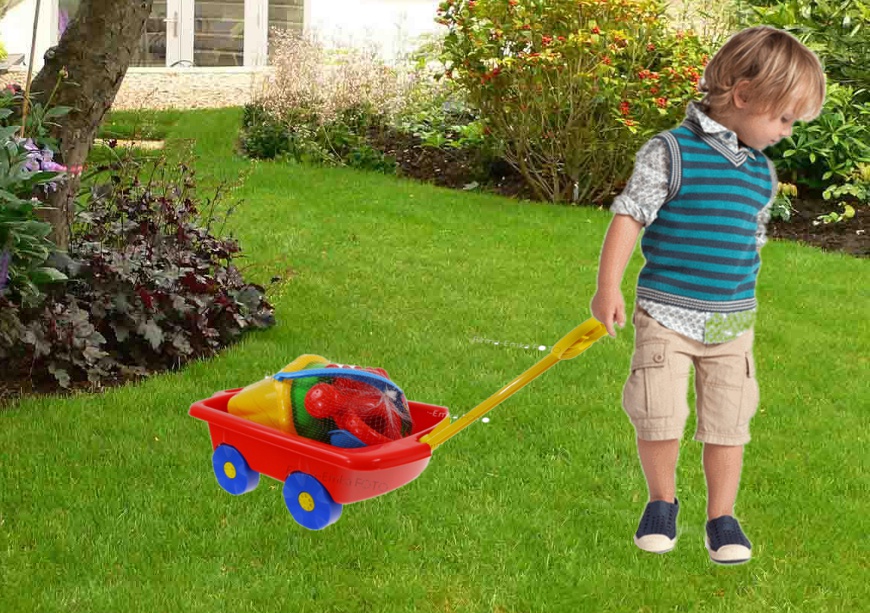Это здорово, как тележка для транспортировки игрушек, а также тачка для песчаного трасспорта :)