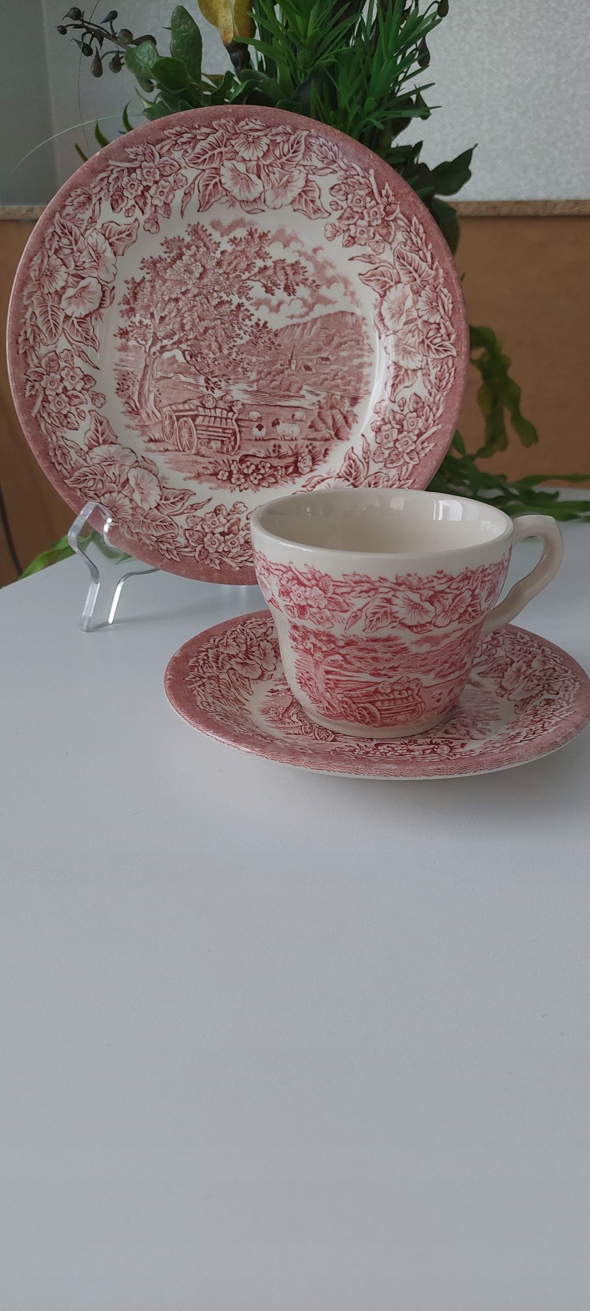 Трио в очень хорошем состоянии, размеры: высота чашки 7см, диаметр чаши 8,5см, диаметр тарелки 15см, диаметр десертной тарелки 19см.