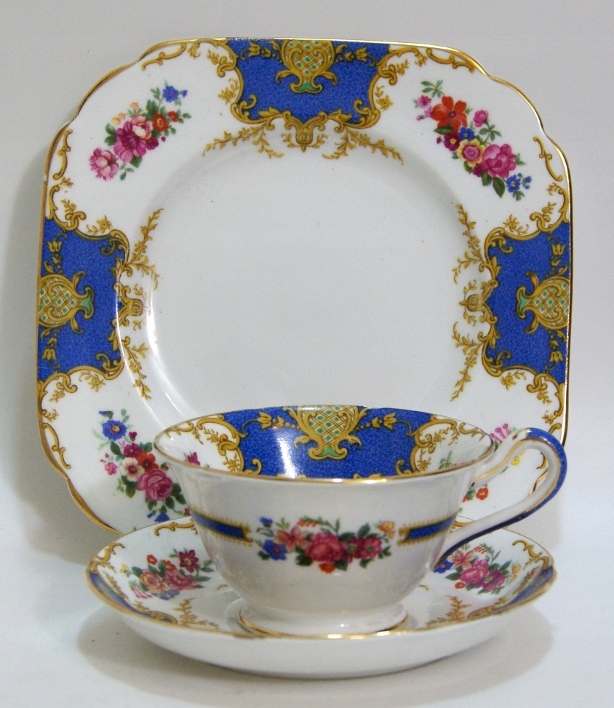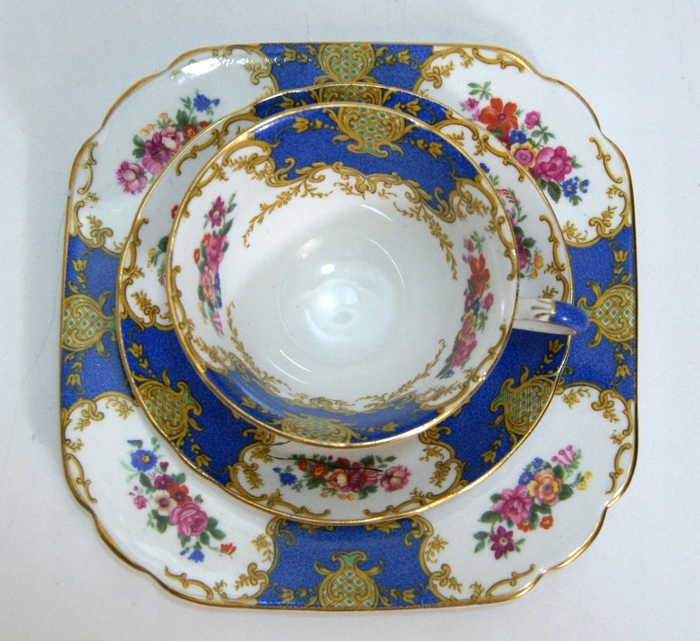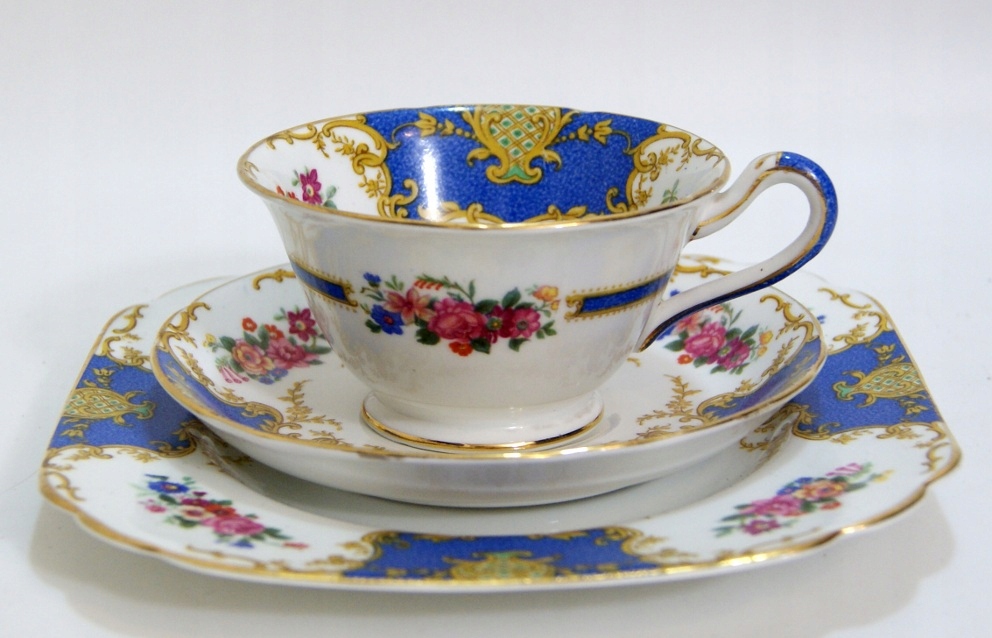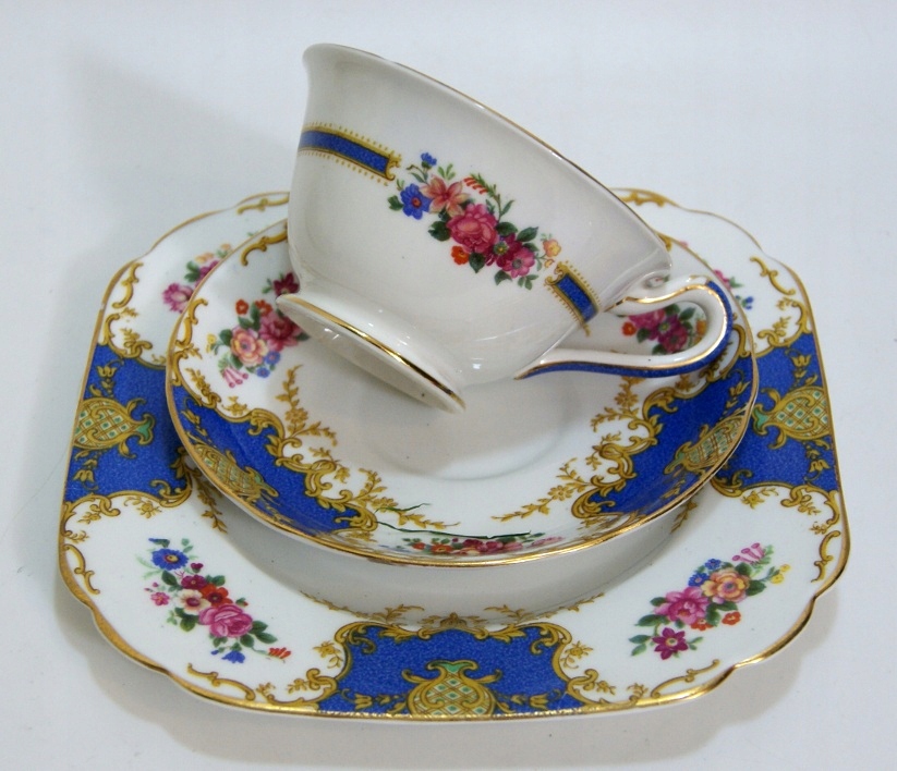 Предмет аукциона — красивый старинный сервиз для завтрака. Белый фарфор, украшенный пестрым узором и позолотой.