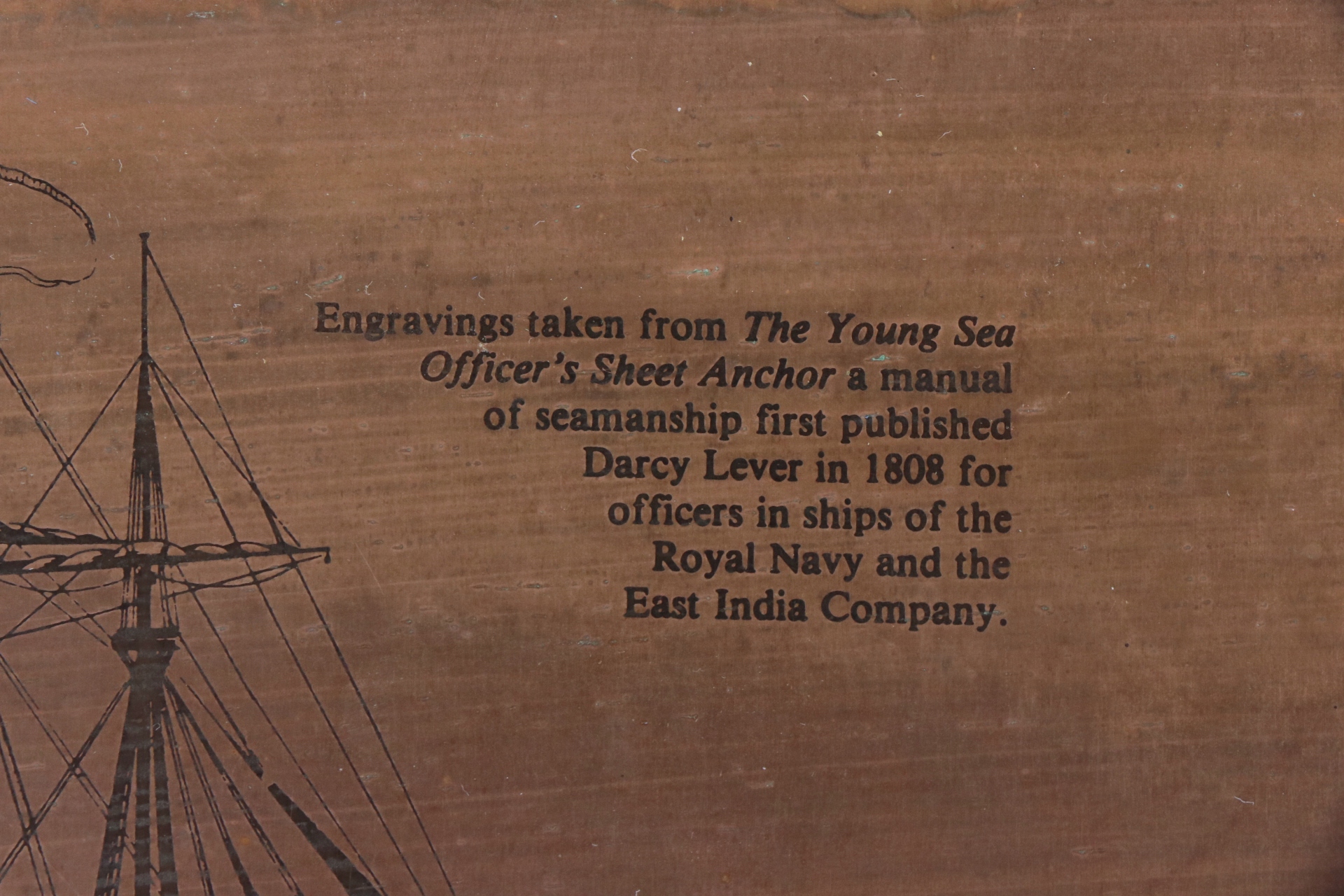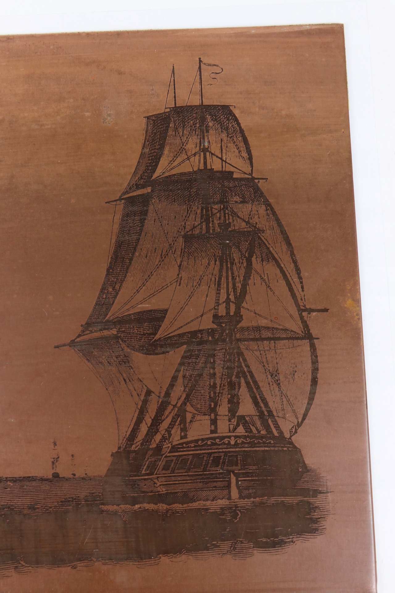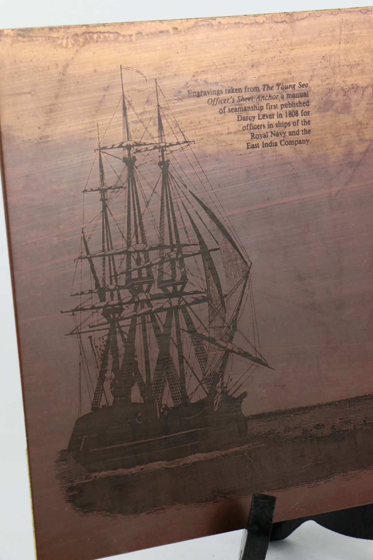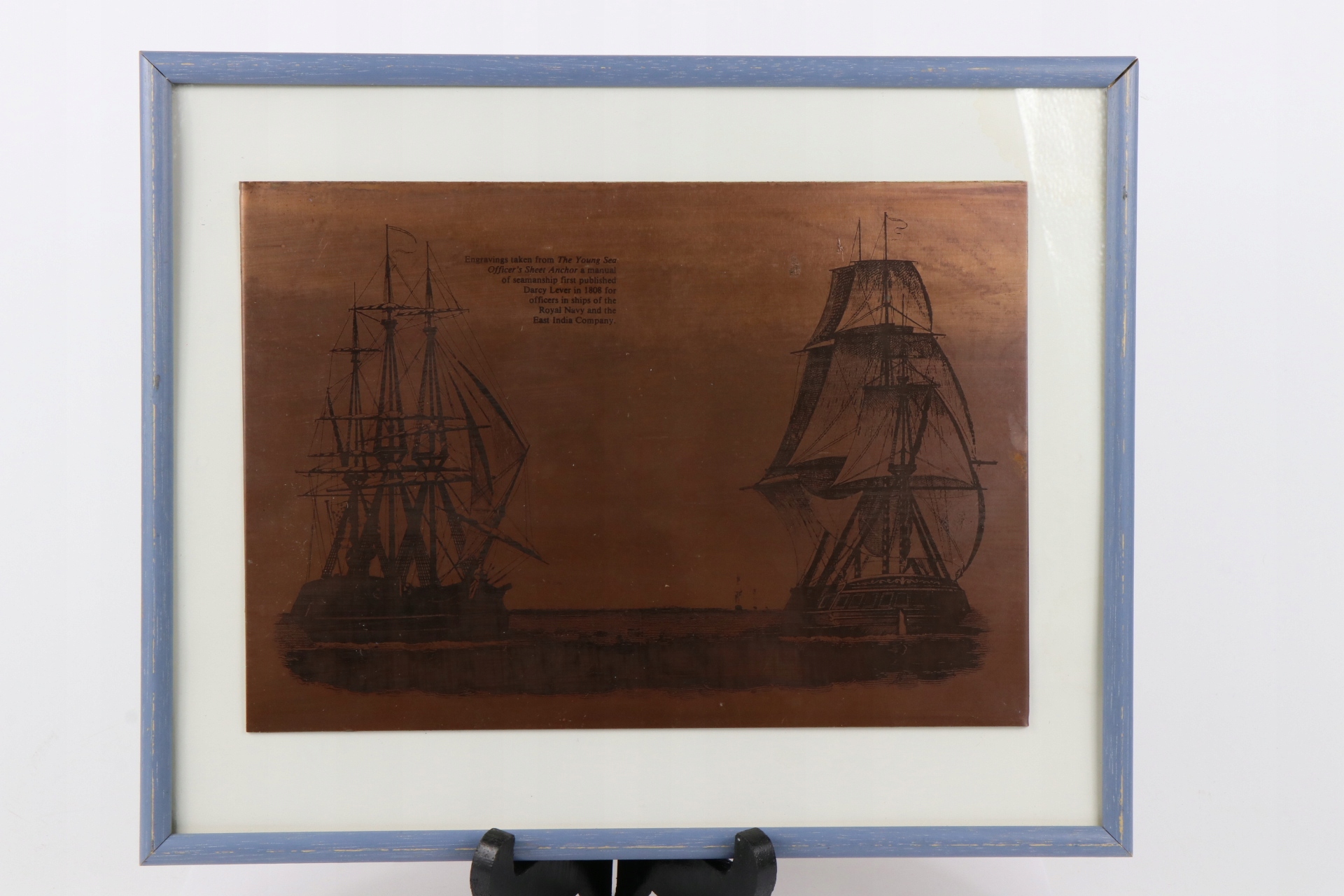 Интересная декоративная доска с изображением парусных кораблей Ост-Индской компании. Мемориальная доска по мотивам рисунка 1808 года. По моему мнению, мемориальная доска 1970 года, изготовлена из омедненного листового металла.