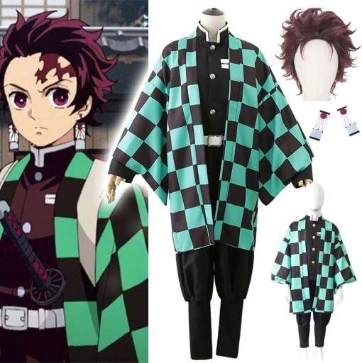Аниме Demon Slayer Косплей Танджиро Полный наряд 8 шт. + Парик