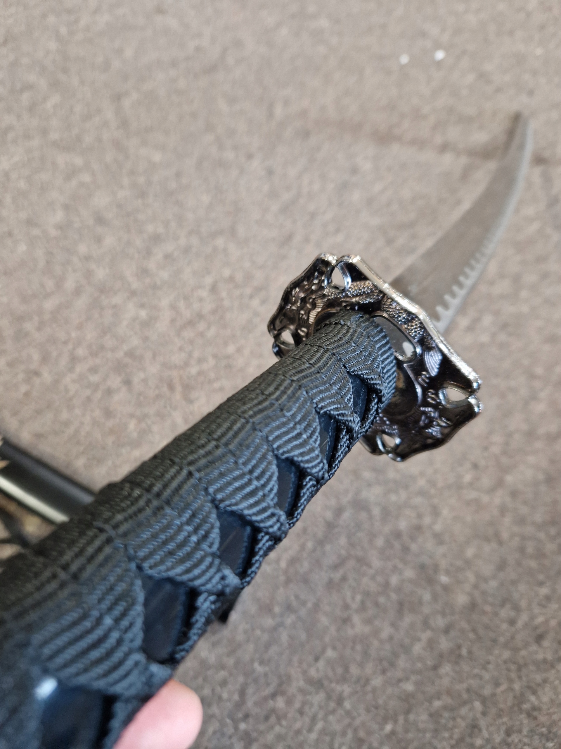 НОЖНИ/ САЯ: твердая древесина - лакированная хлопчатобумажная тесьма (сагео) - ручная гравировка с мотивом дракона.