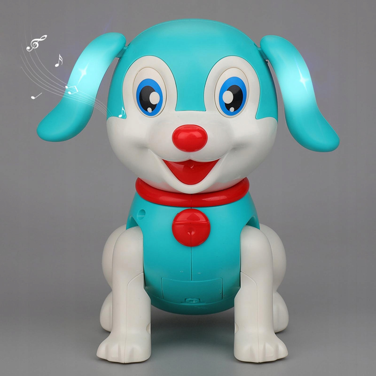 Animowany elektroniczny pies z kreskówek z skaczącym uchem LED i dźwiękiem, chodzący, niebieski