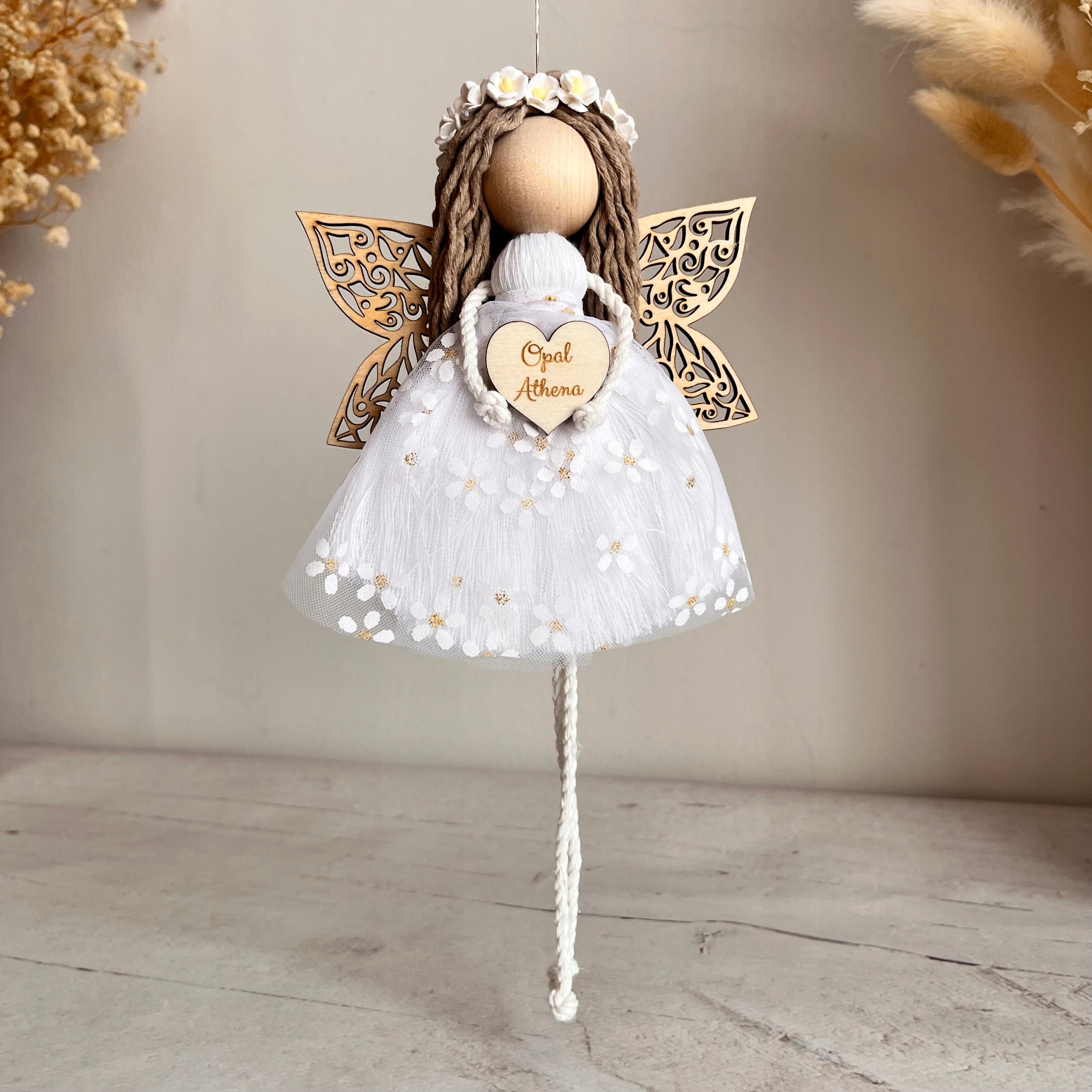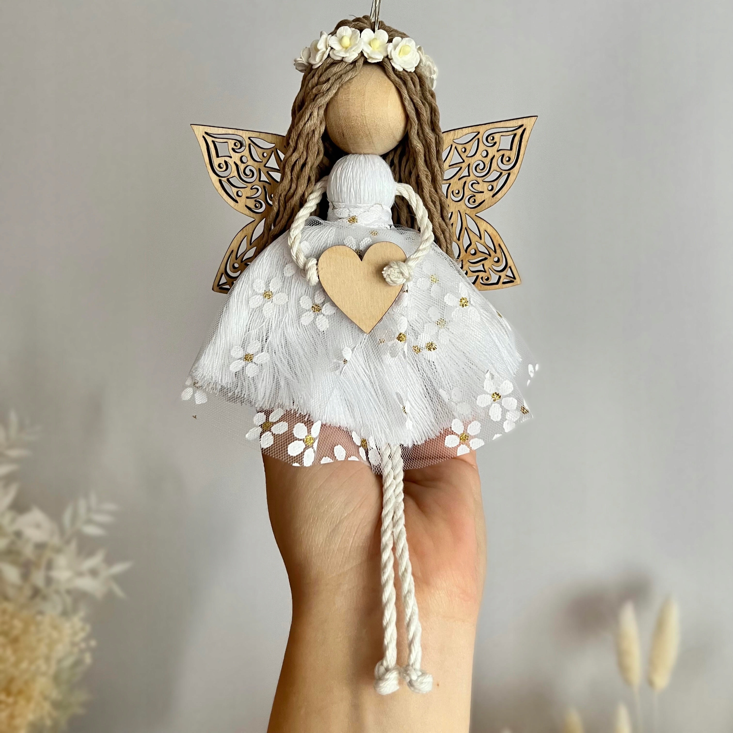 ANIOŁ STRÓŻ ANIOŁEK MAKRAMA ZAWIESZKA ROCZEK CHRZEST URODZINY