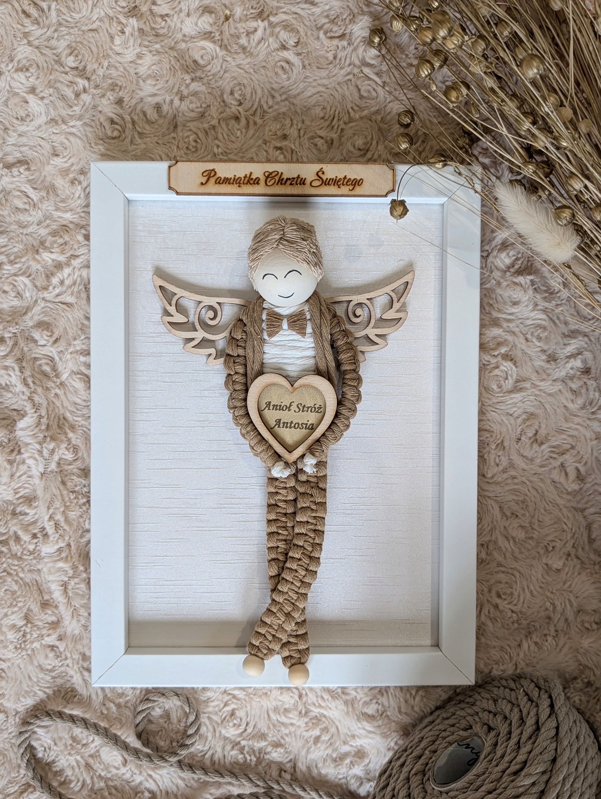 Ангел мальчик кадр подарок сувенир для крещения макрам